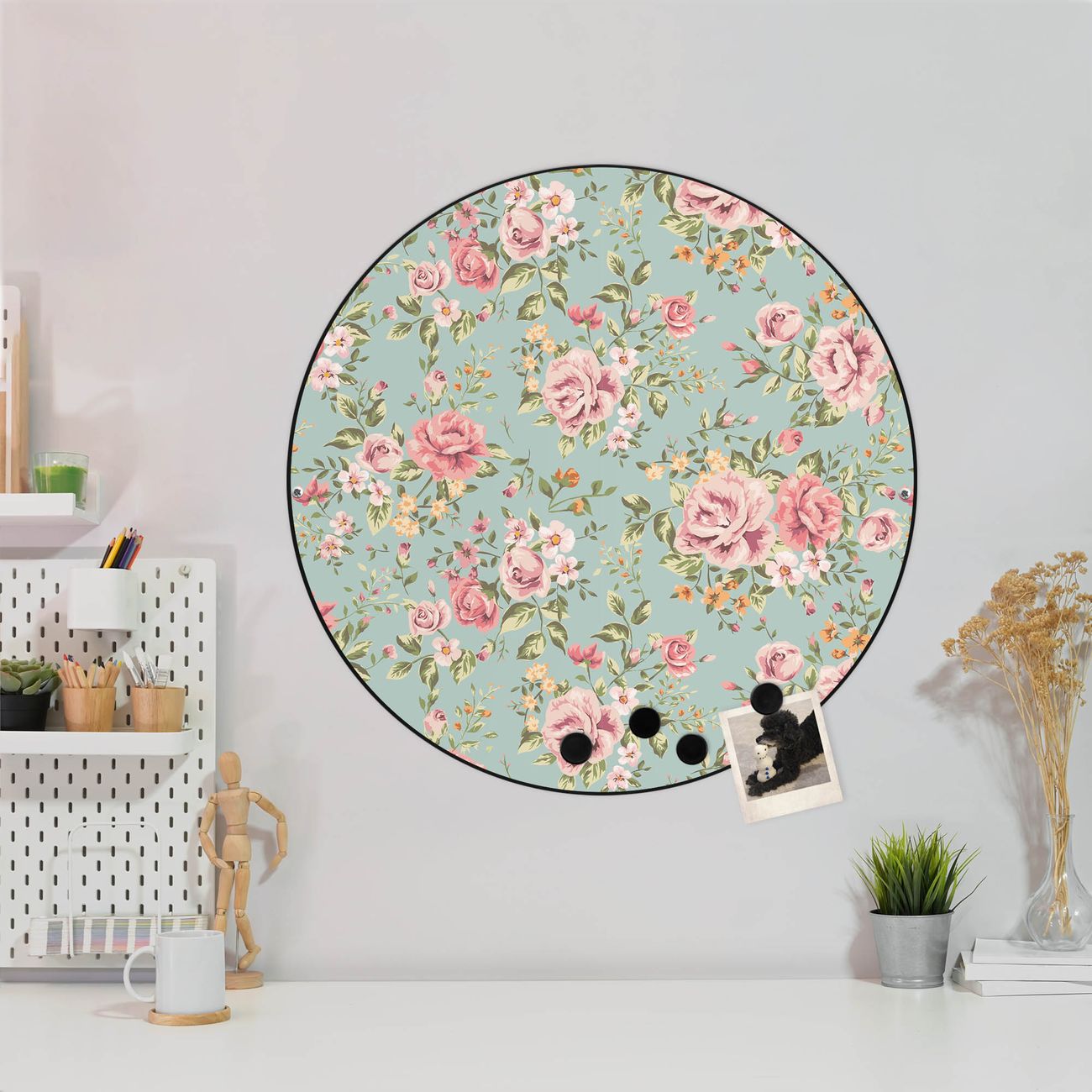 Stahl Magnettafel rund 47cm Altrosa Blume