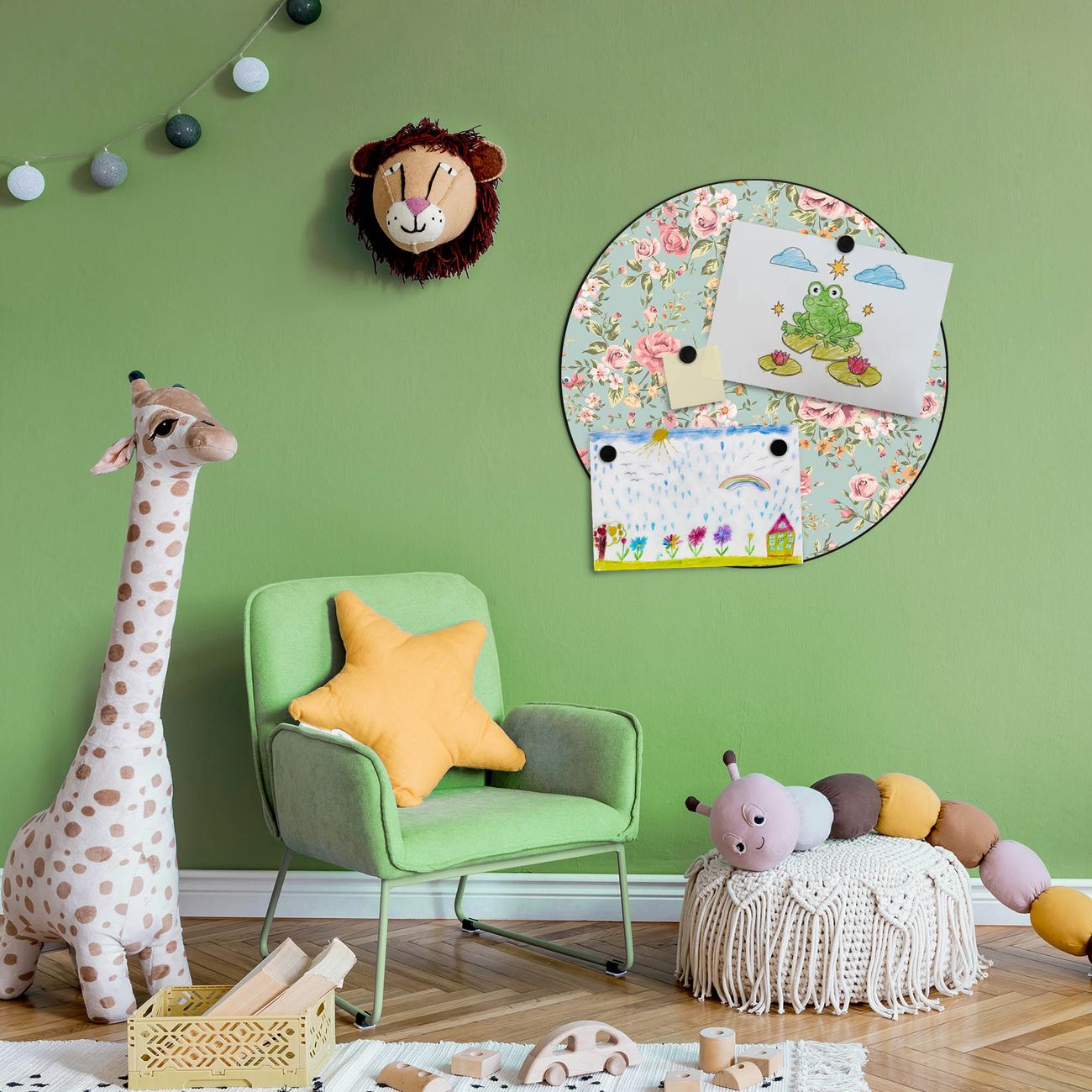 FUNKTION / DESIGN Die banjado Magnettafel mit dem Motiv Motiv Altrosa Blume bringt Ordnung in Ihr Zettelchaos. Fotos, Termine, Notizen oder Rezepte lassen Sich hier stilvoll mit Magneten ordnen, Sie behalten alles im Blick. Die Design Magnetwand ist beschreibbar und wieder abwischbar. Mit dieser Pinnwand haben Sie auch ohne Notizen und Magneten ein schönes Dekoelement. Das Format bietet Ihnen ausreichend Platz um alle wichtigen Informationen im Blick zu behalten. DETAILS / NUTZEN Die magnetische Metall Pinnwand besteht aus schwarz lackiertem Stahl. Sie hat einen Durchmesser von 47cm. Es befinden sich an den Seiten zwei vorgefertigte Löcher die eine schnelle und unkomplizierte Anbringung ermöglichen. Das Motiv ist mit einem seidenmatten Laminat versehen und schützt so zusätzlich vor Kratzern. Es halten alle handelsüblichen Magneten daran. Wir sind ein kleines Team aus dem Herzen von Sachsen. Wir fertigen alle Artikel von Hand für Sie an, Sie erhalten keine preiswerte Importware. Auf Wunsch können Sie auch Ihr eigenes Foto auf die Magnettafel aufbringen, schreiben Sie uns an.