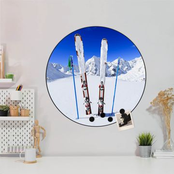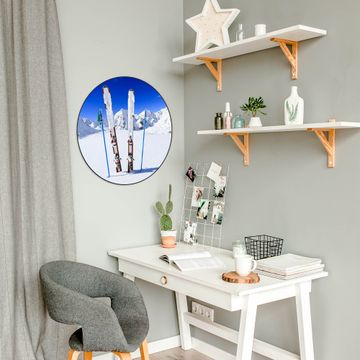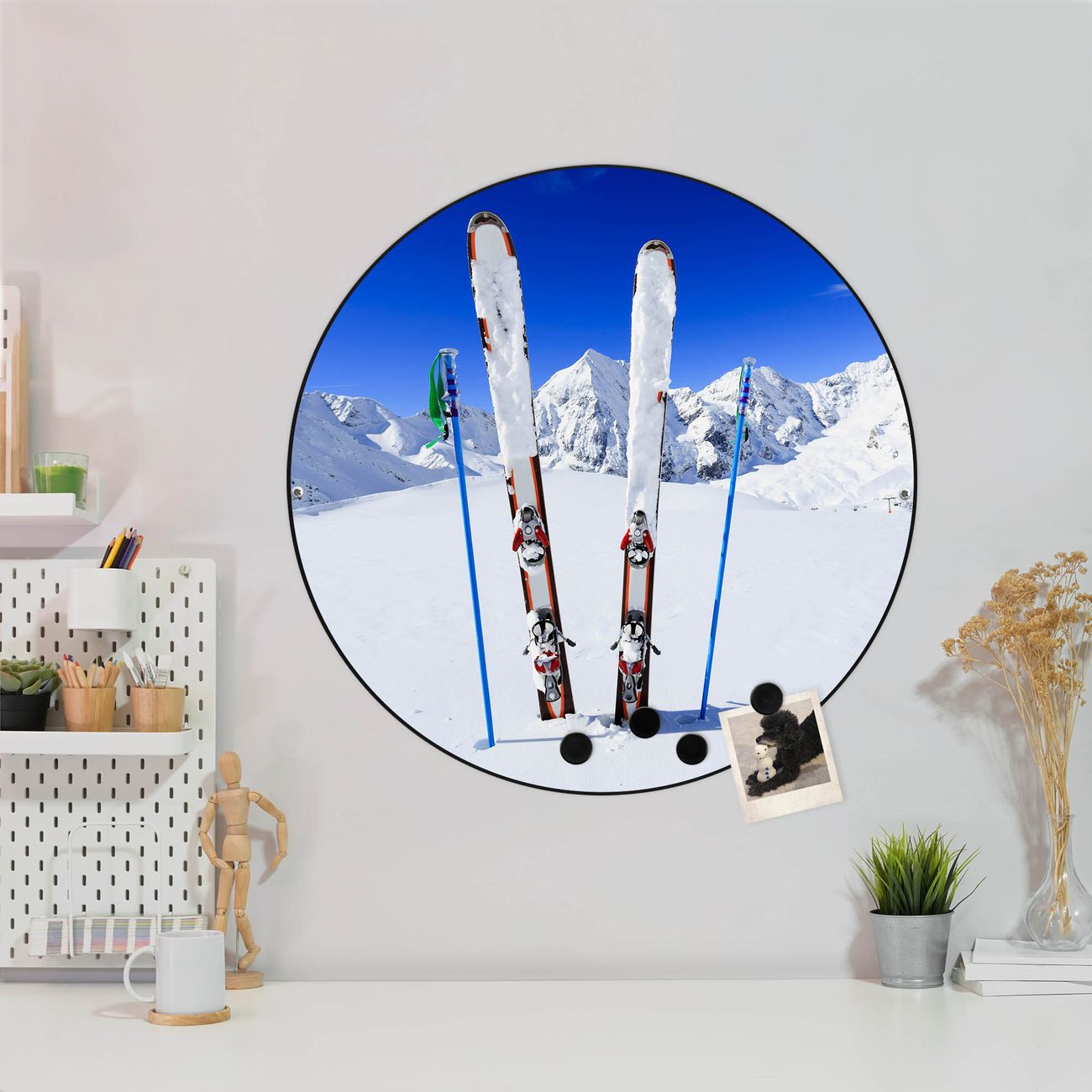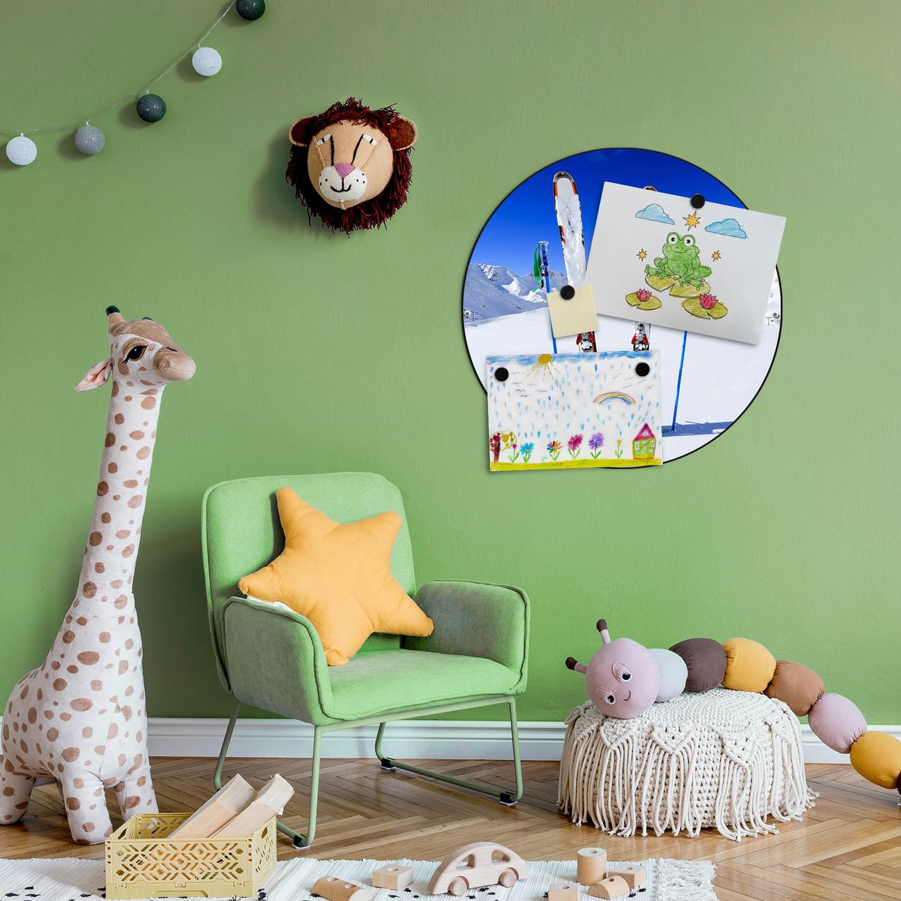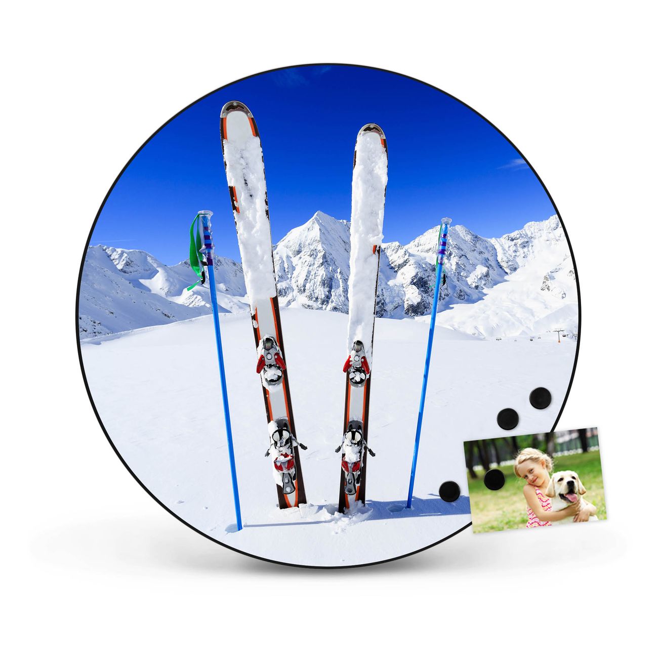 FUNKTION / DESIGN Die banjado Magnettafel mit dem Motiv Motiv Apres Ski bringt Ordnung in Ihr Zettelchaos. Fotos, Termine, Notizen oder Rezepte lassen Sich hier stilvoll mit Magneten ordnen, Sie behalten alles im Blick. Die Design Magnetwand ist beschreibbar und wieder abwischbar. Mit dieser Pinnwand haben Sie auch ohne Notizen und Magneten ein schönes Dekoelement. Das Format bietet Ihnen ausreichend Platz um alle wichtigen Informationen im Blick zu behalten. DETAILS / NUTZEN Die magnetische Metall Pinnwand besteht aus schwarz lackiertem Stahl. Sie hat einen Durchmesser von 47cm. Es befinden sich an den Seiten zwei vorgefertigte Löcher die eine schnelle und unkomplizierte Anbringung ermöglichen. Das Motiv ist mit einem seidenmatten Laminat versehen und schützt so zusätzlich vor Kratzern. Es halten alle handelsüblichen Magneten daran. Wir sind ein kleines Team aus dem Herzen von Sachsen. Wir fertigen alle Artikel von Hand für Sie an, Sie erhalten keine preiswerte Importware. Auf Wunsch können Sie auch Ihr eigenes Foto auf die Magnettafel aufbringen, schreiben Sie uns an.