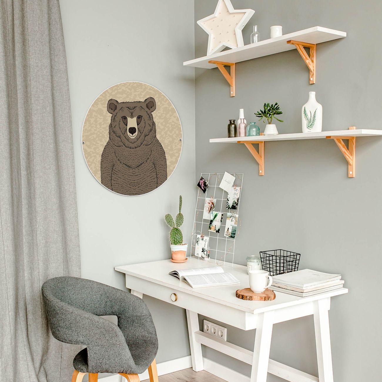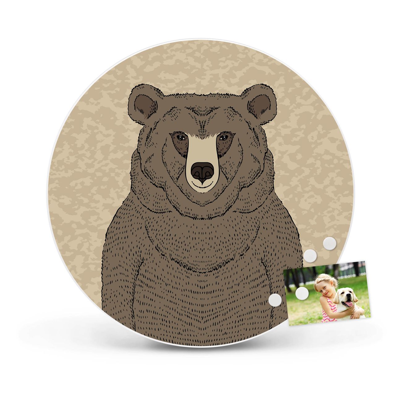 FUNKTION / DESIGN Die banjado Magnettafel mit dem Motiv Motiv Bär Ohne Brille bringt Ordnung in Ihr Zettelchaos. Fotos, Termine, Notizen oder Rezepte lassen Sich hier stilvoll mit Magneten ordnen, Sie behalten alles im Blick. Die Design Magnetwand ist beschreibbar und wieder abwischbar. Mit dieser Pinnwand haben Sie auch ohne Notizen und Magneten ein schönes Dekoelement. Das Format bietet Ihnen ausreichend Platz um alle wichtigen Informationen im Blick zu behalten. DETAILS / NUTZEN Die magnetische Metall Pinnwand besteht aus weiß lackiertem Stahl. Sie hat einen Durchmesser von 47cm. Es befinden sich an den Seiten zwei vorgefertigte Löcher die eine schnelle und unkomplizierte Anbringung ermöglichen. Das Motiv ist mit einem seidenmatten Laminat versehen und schützt so zusätzlich vor Kratzern. Es halten alle handelsüblichen Magneten daran. Wir sind ein kleines Team aus dem Herzen von Sachsen. Wir fertigen alle Artikel von Hand für Sie an, Sie erhalten keine preiswerte Importware. Auf Wunsch können Sie auch Ihr eigenes Foto auf die Magnettafel aufbringen, schreiben Sie uns an.