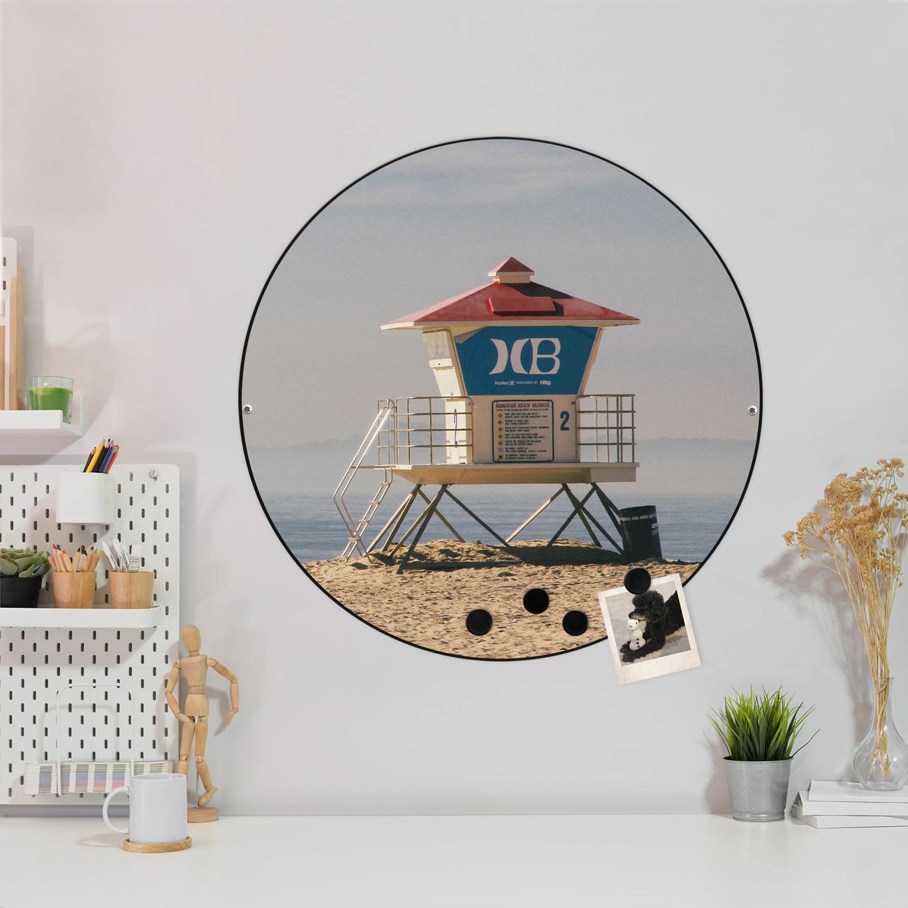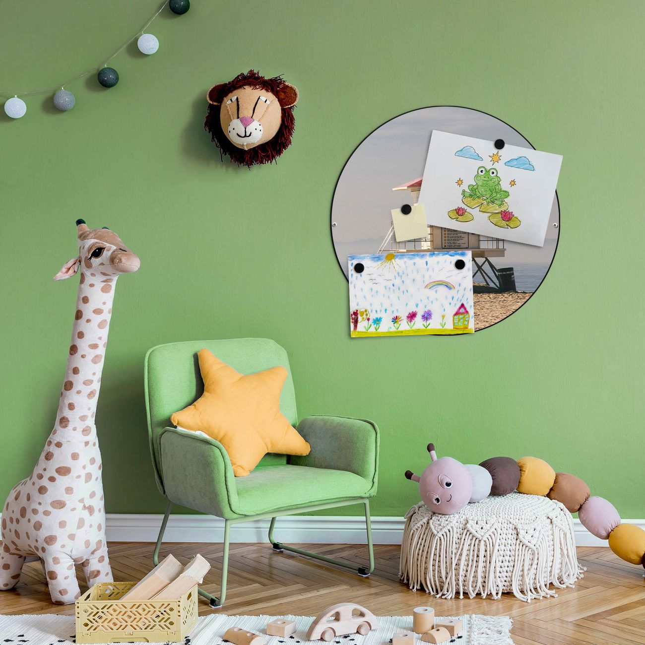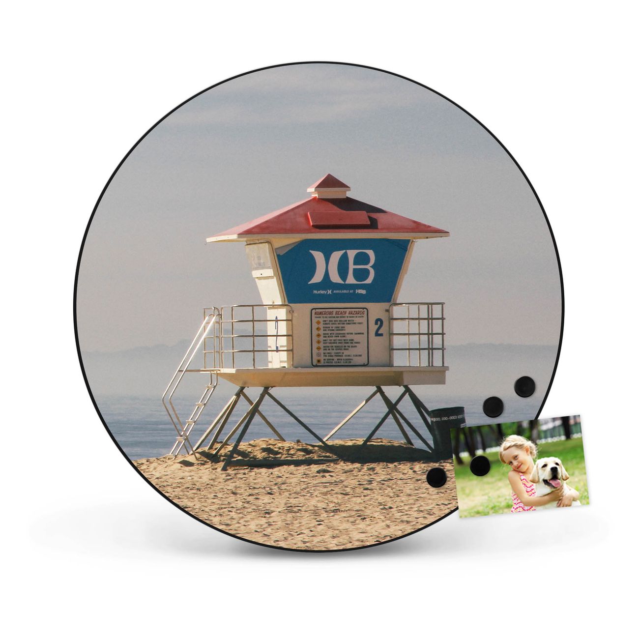 FUNKTION / DESIGN Die banjado Magnettafel mit dem Motiv Motiv Beach Section bringt Ordnung in Ihr Zettelchaos. Fotos, Termine, Notizen oder Rezepte lassen Sich hier stilvoll mit Magneten ordnen, Sie behalten alles im Blick. Die Design Magnetwand ist beschreibbar und wieder abwischbar. Mit dieser Pinnwand haben Sie auch ohne Notizen und Magneten ein schönes Dekoelement. Das Format bietet Ihnen ausreichend Platz um alle wichtigen Informationen im Blick zu behalten. DETAILS / NUTZEN Die magnetische Metall Pinnwand besteht aus schwarz lackiertem Stahl. Sie hat einen Durchmesser von 47cm. Es befinden sich an den Seiten zwei vorgefertigte Löcher die eine schnelle und unkomplizierte Anbringung ermöglichen. Das Motiv ist mit einem seidenmatten Laminat versehen und schützt so zusätzlich vor Kratzern. Es halten alle handelsüblichen Magneten daran. Wir sind ein kleines Team aus dem Herzen von Sachsen. Wir fertigen alle Artikel von Hand für Sie an, Sie erhalten keine preiswerte Importware. Auf Wunsch können Sie auch Ihr eigenes Foto auf die Magnettafel aufbringen, schreiben Sie uns an.