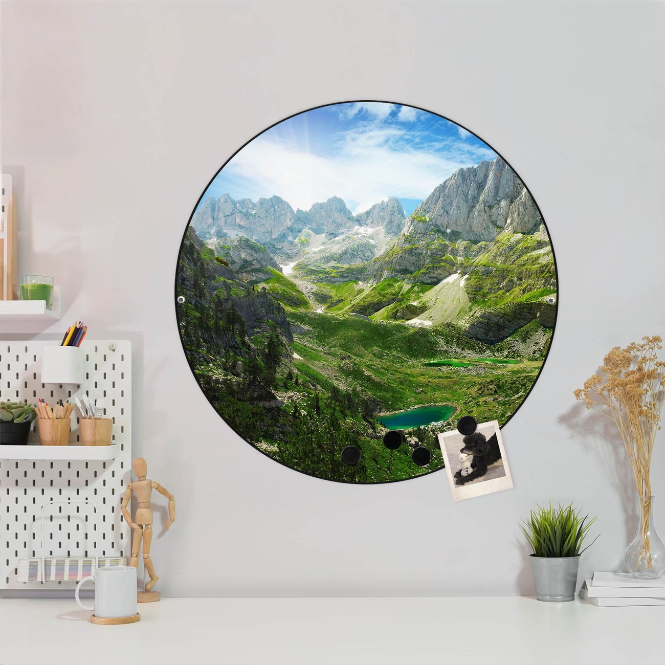 Stahl Magnettafel rund 47cm Bergsee Alpen