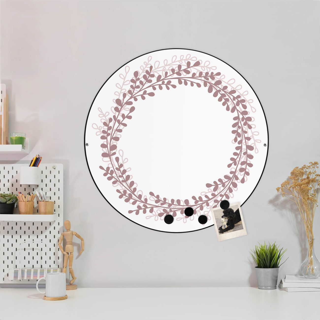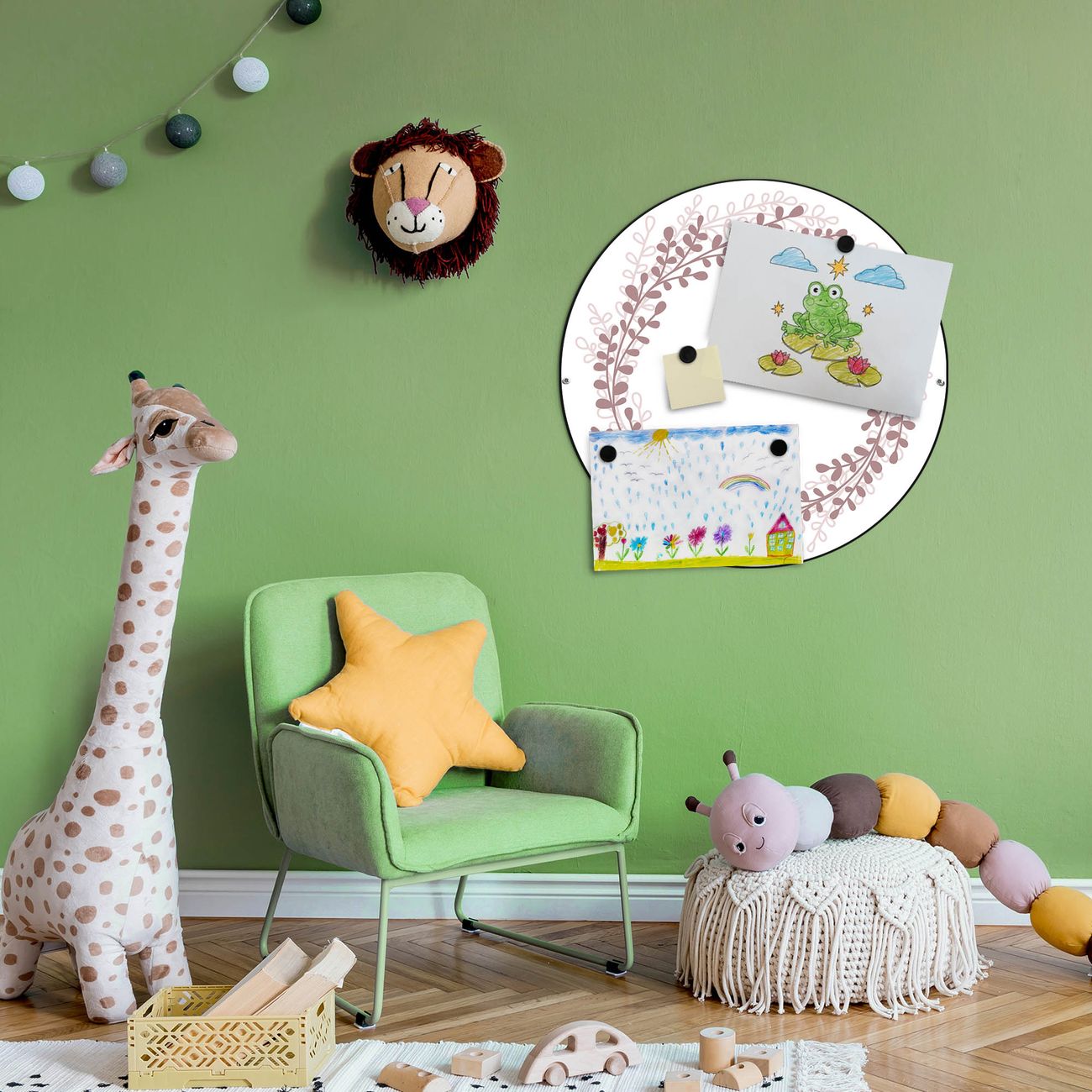 FUNKTION / DESIGN Die banjado Magnettafel mit dem Motiv Motiv Blätterkranz bringt Ordnung in Ihr Zettelchaos. Fotos, Termine, Notizen oder Rezepte lassen Sich hier stilvoll mit Magneten ordnen, Sie behalten alles im Blick. Die Design Magnetwand ist beschreibbar und wieder abwischbar. Mit dieser Pinnwand haben Sie auch ohne Notizen und Magneten ein schönes Dekoelement. Das Format bietet Ihnen ausreichend Platz um alle wichtigen Informationen im Blick zu behalten. DETAILS / NUTZEN Die magnetische Metall Pinnwand besteht aus schwarz lackiertem Stahl. Sie hat einen Durchmesser von 47cm. Es befinden sich an den Seiten zwei vorgefertigte Löcher die eine schnelle und unkomplizierte Anbringung ermöglichen. Das Motiv ist mit einem seidenmatten Laminat versehen und schützt so zusätzlich vor Kratzern. Es halten alle handelsüblichen Magneten daran. Wir sind ein kleines Team aus dem Herzen von Sachsen. Wir fertigen alle Artikel von Hand für Sie an, Sie erhalten keine preiswerte Importware. Auf Wunsch können Sie auch Ihr eigenes Foto auf die Magnettafel aufbringen, schreiben Sie uns an.