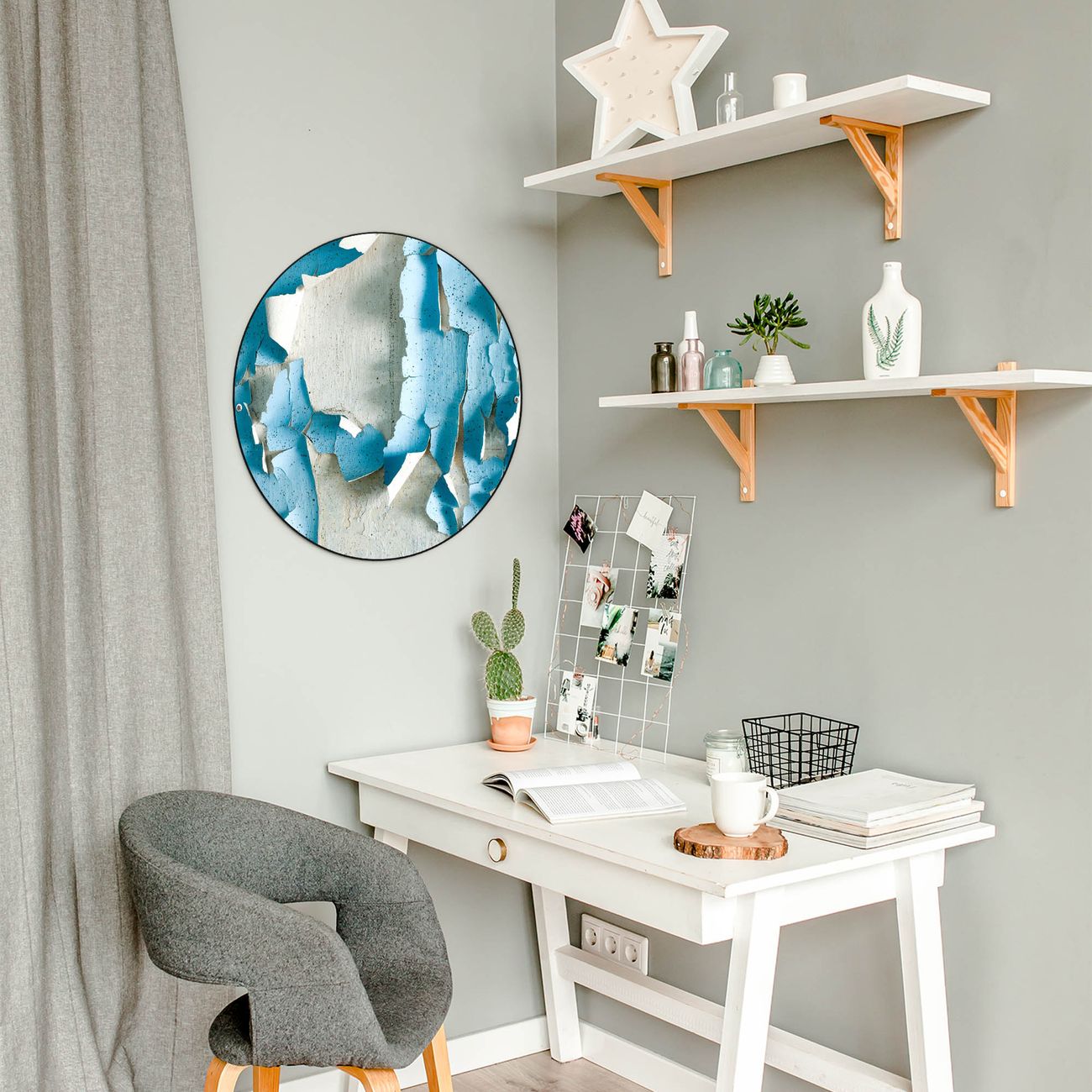 FUNKTION / DESIGN Die banjado Magnettafel mit dem Motiv Motiv Blätternde Farbe bringt Ordnung in Ihr Zettelchaos. Fotos, Termine, Notizen oder Rezepte lassen Sich hier stilvoll mit Magneten ordnen, Sie behalten alles im Blick. Die Design Magnetwand ist beschreibbar und wieder abwischbar. Mit dieser Pinnwand haben Sie auch ohne Notizen und Magneten ein schönes Dekoelement. Das Format bietet Ihnen ausreichend Platz um alle wichtigen Informationen im Blick zu behalten. DETAILS / NUTZEN Die magnetische Metall Pinnwand besteht aus schwarz lackiertem Stahl. Sie hat einen Durchmesser von 47cm. Es befinden sich an den Seiten zwei vorgefertigte Löcher die eine schnelle und unkomplizierte Anbringung ermöglichen. Das Motiv ist mit einem seidenmatten Laminat versehen und schützt so zusätzlich vor Kratzern. Es halten alle handelsüblichen Magneten daran. Wir sind ein kleines Team aus dem Herzen von Sachsen. Wir fertigen alle Artikel von Hand für Sie an, Sie erhalten keine preiswerte Importware. Auf Wunsch können Sie auch Ihr eigenes Foto auf die Magnettafel aufbringen, schreiben Sie uns an.