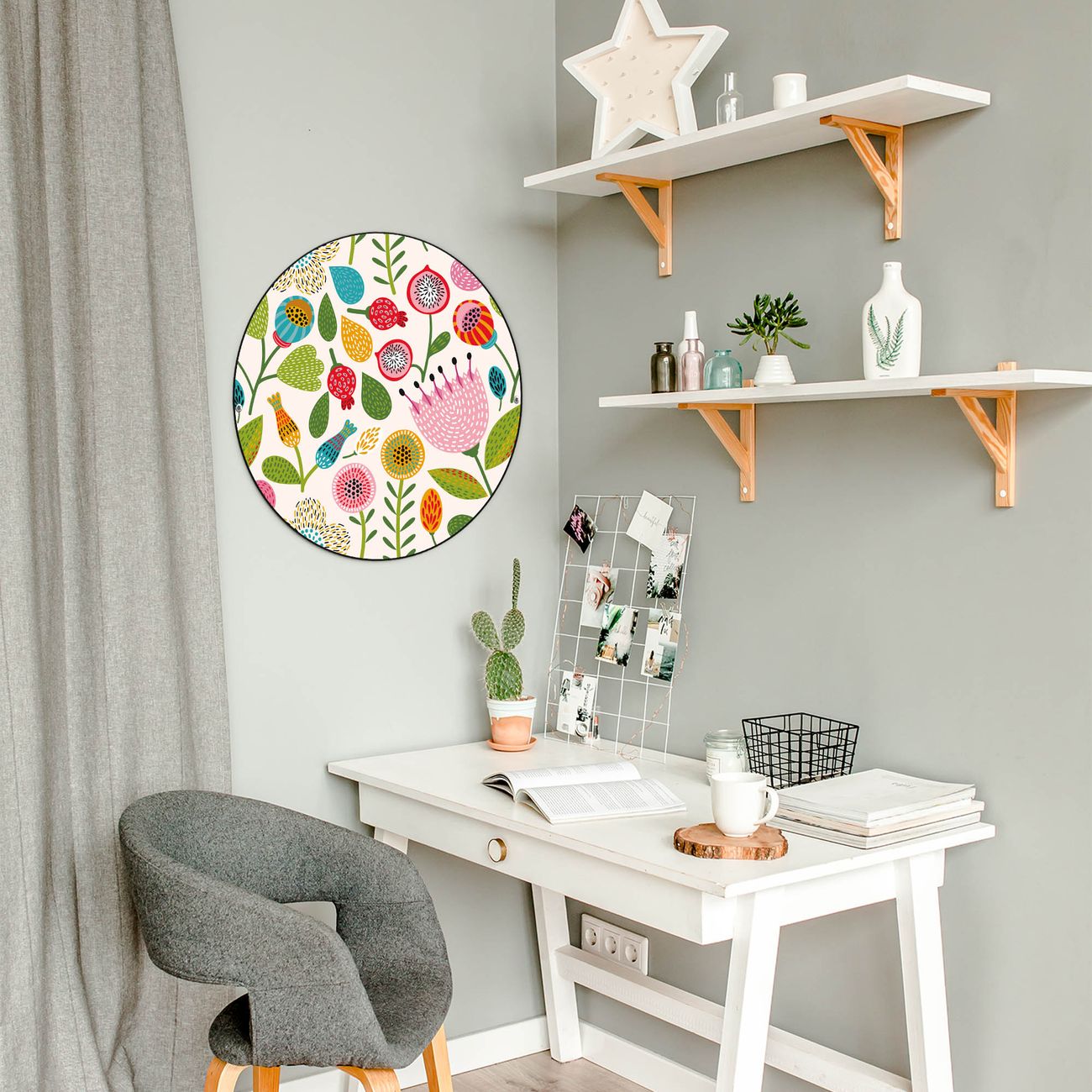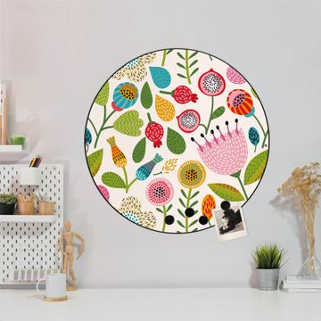 Stahl Magnettafel rund 47cm Blumen Naiv