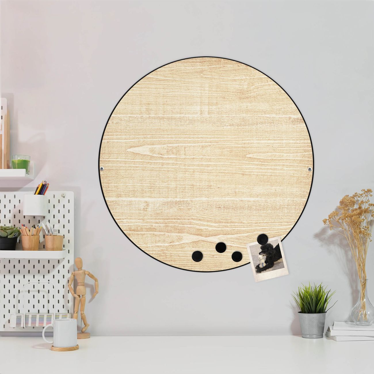 Stahl Magnettafel rund 47cm Bretter