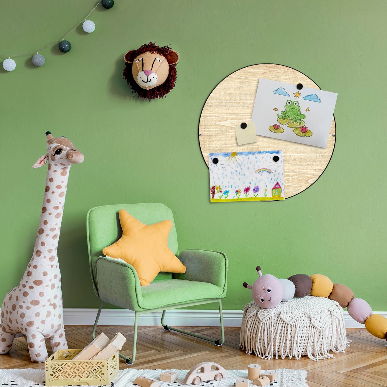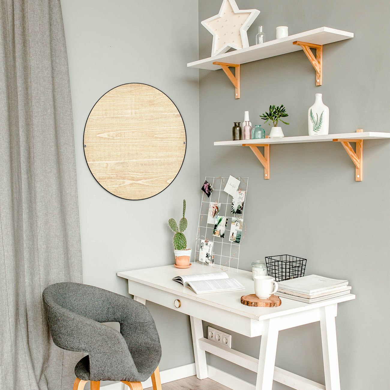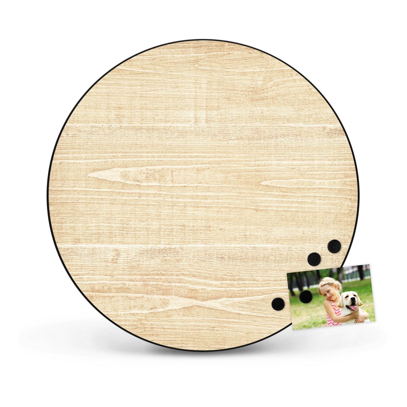 FUNKTION / DESIGN Die banjado Magnettafel mit dem Motiv Motiv Bretter bringt Ordnung in Ihr Zettelchaos. Fotos, Termine, Notizen oder Rezepte lassen Sich hier stilvoll mit Magneten ordnen, Sie behalten alles im Blick. Die Design Magnetwand ist beschreibbar und wieder abwischbar. Mit dieser Pinnwand haben Sie auch ohne Notizen und Magneten ein schönes Dekoelement. Das Format bietet Ihnen ausreichend Platz um alle wichtigen Informationen im Blick zu behalten. DETAILS / NUTZEN Die magnetische Metall Pinnwand besteht aus schwarz lackiertem Stahl. Sie hat einen Durchmesser von 47cm. Es befinden sich an den Seiten zwei vorgefertigte Löcher die eine schnelle und unkomplizierte Anbringung ermöglichen. Das Motiv ist mit einem seidenmatten Laminat versehen und schützt so zusätzlich vor Kratzern. Es halten alle handelsüblichen Magneten daran. Wir sind ein kleines Team aus dem Herzen von Sachsen. Wir fertigen alle Artikel von Hand für Sie an, Sie erhalten keine preiswerte Importware. Auf Wunsch können Sie auch Ihr eigenes Foto auf die Magnettafel aufbringen, schreiben Sie uns an.