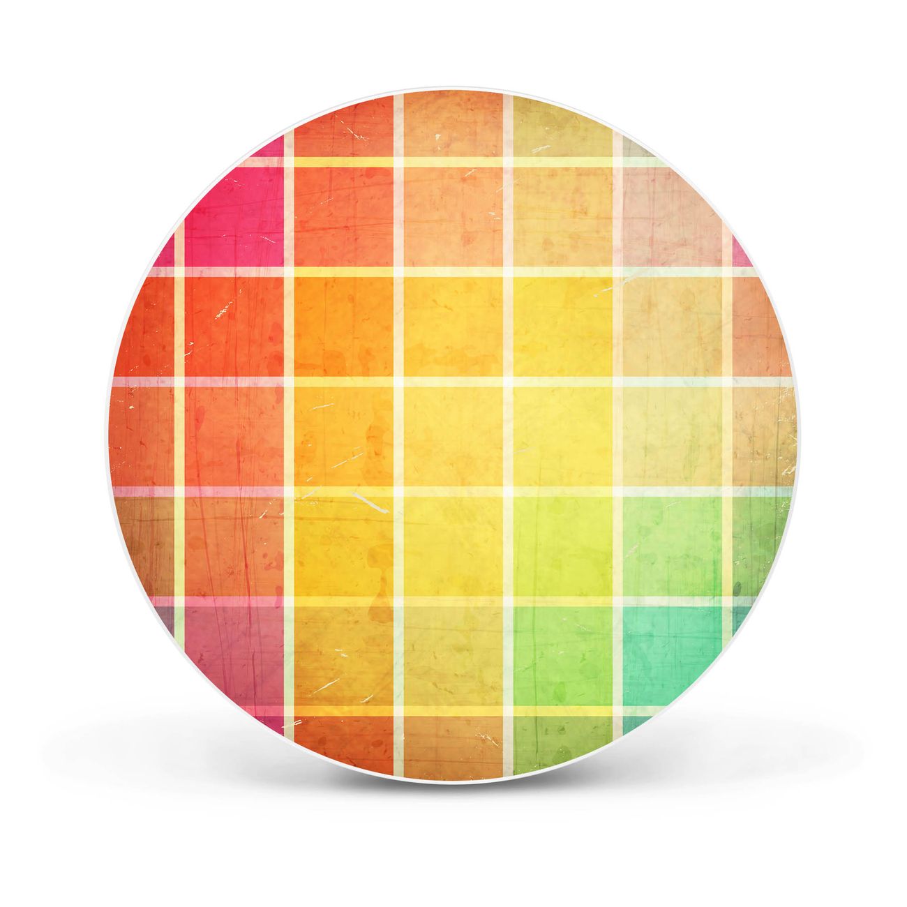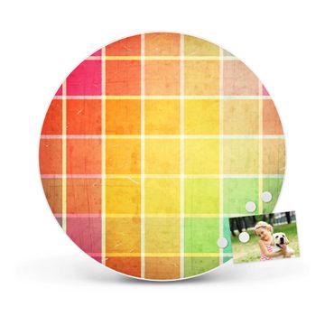 FUNKTION / DESIGN Die banjado Magnettafel mit dem Motiv Motiv Bunte Glasbausteine bringt Ordnung in Ihr Zettelchaos. Fotos, Termine, Notizen oder Rezepte lassen Sich hier stilvoll mit Magneten ordnen, Sie behalten alles im Blick. Die Design Magnetwand ist beschreibbar und wieder abwischbar. Mit dieser Pinnwand haben Sie auch ohne Notizen und Magneten ein schönes Dekoelement. Das Format bietet Ihnen ausreichend Platz um alle wichtigen Informationen im Blick zu behalten. DETAILS / NUTZEN Die magnetische Metall Pinnwand besteht aus weiß lackiertem Stahl. Sie hat einen Durchmesser von 47cm. Es befinden sich an den Seiten zwei vorgefertigte Löcher die eine schnelle und unkomplizierte Anbringung ermöglichen. Das Motiv ist mit einem seidenmatten Laminat versehen und schützt so zusätzlich vor Kratzern. Es halten alle handelsüblichen Magneten daran. Wir sind ein kleines Team aus dem Herzen von Sachsen. Wir fertigen alle Artikel von Hand für Sie an, Sie erhalten keine preiswerte Importware. Auf Wunsch können Sie auch Ihr eigenes Foto auf die Magnettafel aufbringen, schreiben Sie uns an.