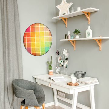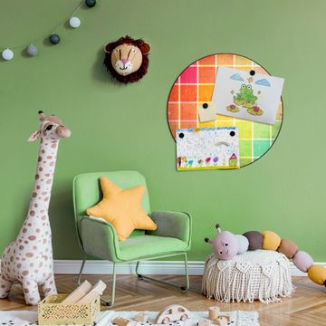 FUNKTION / DESIGN Die banjado Magnettafel mit dem Motiv Motiv Bunte Glasbausteine bringt Ordnung in Ihr Zettelchaos. Fotos, Termine, Notizen oder Rezepte lassen Sich hier stilvoll mit Magneten ordnen, Sie behalten alles im Blick. Die Design Magnetwand ist beschreibbar und wieder abwischbar. Mit dieser Pinnwand haben Sie auch ohne Notizen und Magneten ein schönes Dekoelement. Das Format bietet Ihnen ausreichend Platz um alle wichtigen Informationen im Blick zu behalten. DETAILS / NUTZEN Die magnetische Metall Pinnwand besteht aus schwarz lackiertem Stahl. Sie hat einen Durchmesser von 47cm. Es befinden sich an den Seiten zwei vorgefertigte Löcher die eine schnelle und unkomplizierte Anbringung ermöglichen. Das Motiv ist mit einem seidenmatten Laminat versehen und schützt so zusätzlich vor Kratzern. Es halten alle handelsüblichen Magneten daran. Wir sind ein kleines Team aus dem Herzen von Sachsen. Wir fertigen alle Artikel von Hand für Sie an, Sie erhalten keine preiswerte Importware. Auf Wunsch können Sie auch Ihr eigenes Foto auf die Magnettafel aufbringen, schreiben Sie uns an.