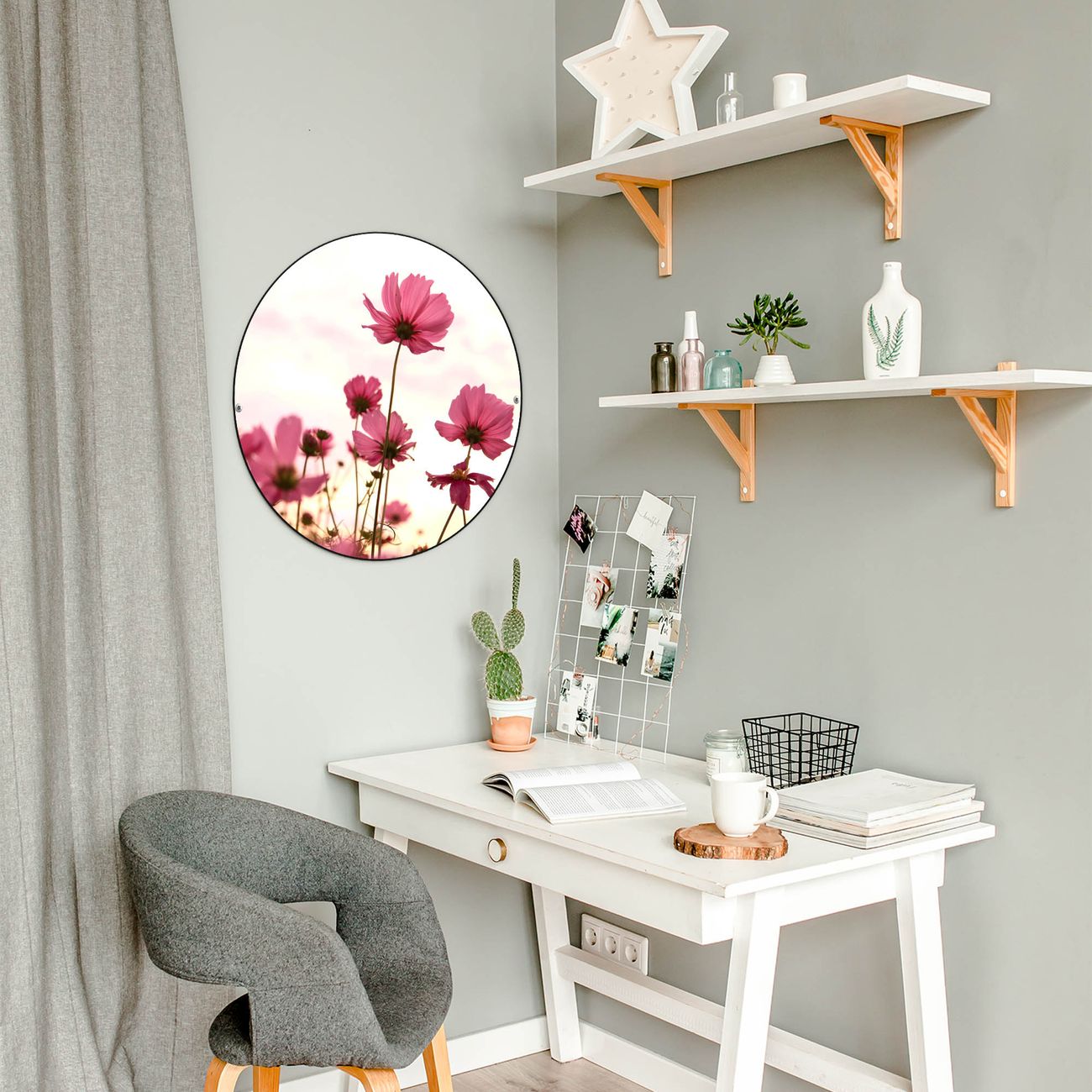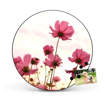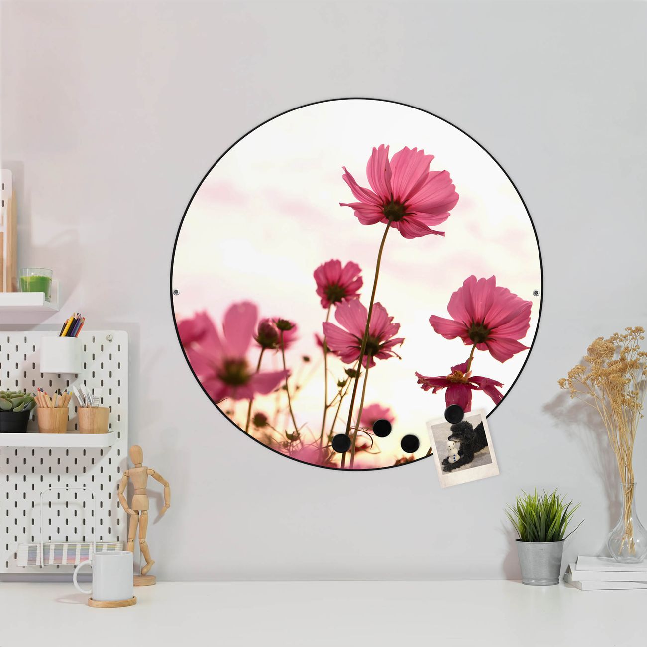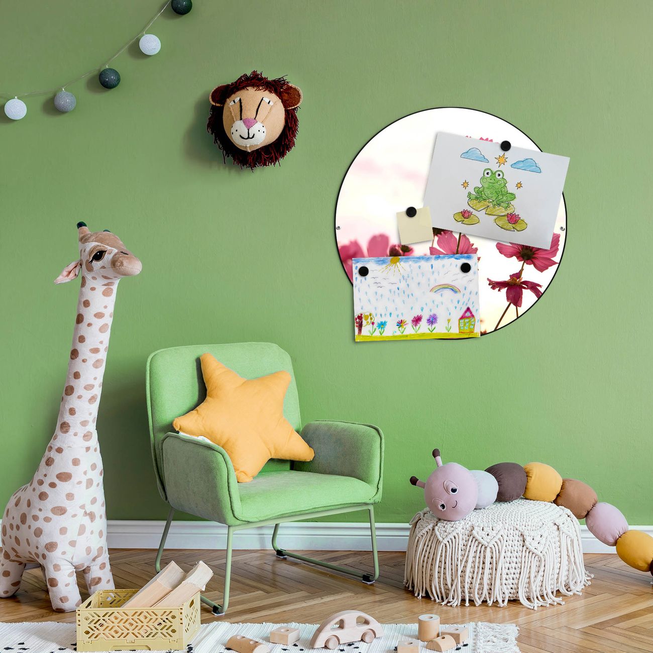 FUNKTION / DESIGN Die banjado Magnettafel mit dem Motiv Motiv Cosmea bringt Ordnung in Ihr Zettelchaos. Fotos, Termine, Notizen oder Rezepte lassen Sich hier stilvoll mit Magneten ordnen, Sie behalten alles im Blick. Die Design Magnetwand ist beschreibbar und wieder abwischbar. Mit dieser Pinnwand haben Sie auch ohne Notizen und Magneten ein schönes Dekoelement. Das Format bietet Ihnen ausreichend Platz um alle wichtigen Informationen im Blick zu behalten. DETAILS / NUTZEN Die magnetische Metall Pinnwand besteht aus schwarz lackiertem Stahl. Sie hat einen Durchmesser von 47cm. Es befinden sich an den Seiten zwei vorgefertigte Löcher die eine schnelle und unkomplizierte Anbringung ermöglichen. Das Motiv ist mit einem seidenmatten Laminat versehen und schützt so zusätzlich vor Kratzern. Es halten alle handelsüblichen Magneten daran. Wir sind ein kleines Team aus dem Herzen von Sachsen. Wir fertigen alle Artikel von Hand für Sie an, Sie erhalten keine preiswerte Importware. Auf Wunsch können Sie auch Ihr eigenes Foto auf die Magnettafel aufbringen, schreiben Sie uns an.