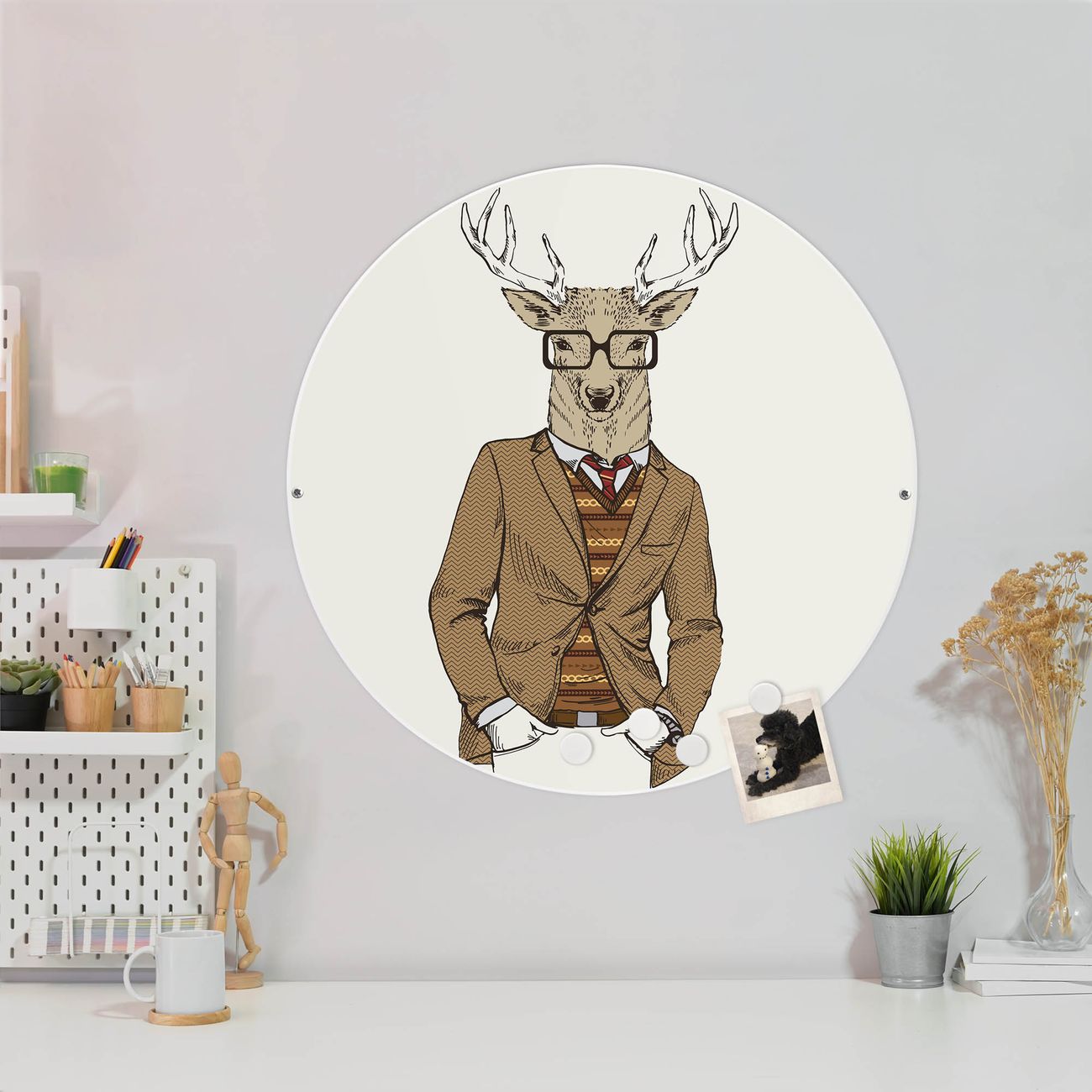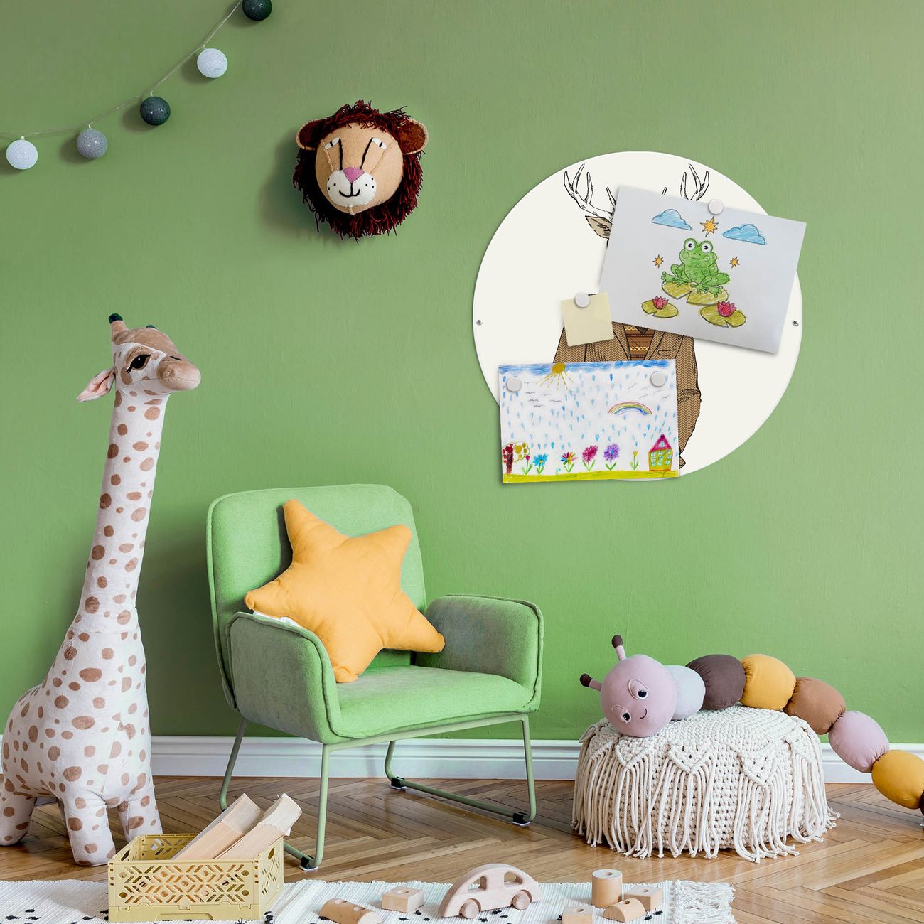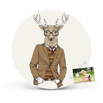 FUNKTION / DESIGN Die banjado Magnettafel mit dem Motiv Doktor Hirsch bringt Ordnung in Ihr Zettelchaos. Fotos, Termine, Notizen oder Rezepte lassen Sich hier stilvoll mit Magneten ordnen, Sie behalten alles im Blick. Die Design Magnetwand ist beschreibbar und wieder abwischbar. Mit dieser Pinnwand haben Sie auch ohne Notizen und Magneten ein schönes Dekoelement. Das Format bietet Ihnen ausreichend Platz um alle wichtigen Informationen im Blick zu behalten. DETAILS / NUTZEN Die magnetische Metall Pinnwand besteht aus schwarz lackiertem Stahl. Sie hat einen Durchmesser von 47cm. Es befinden sich an den Seiten zwei vorgefertigte Löcher die eine schnelle und unkomplizierte Anbringung ermöglichen. Das Motiv ist mit einem seidenmatten Laminat versehen und schützt so zusätzlich vor Kratzern. Es halten alle handelsüblichen Magneten daran. Wir sind ein kleines Team aus dem Herzen von Sachsen. Wir fertigen alle Artikel von Hand für Sie an, Sie erhalten keine preiswerte Importware. Auf Wunsch können Sie auch Ihr eigenes Foto auf die Magnettafel aufbringen, schreiben Sie uns an.