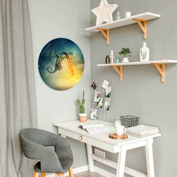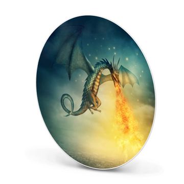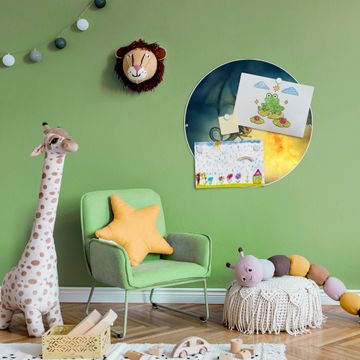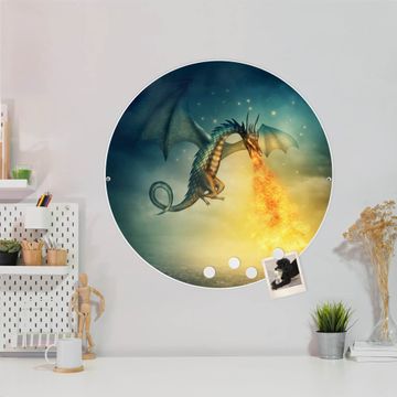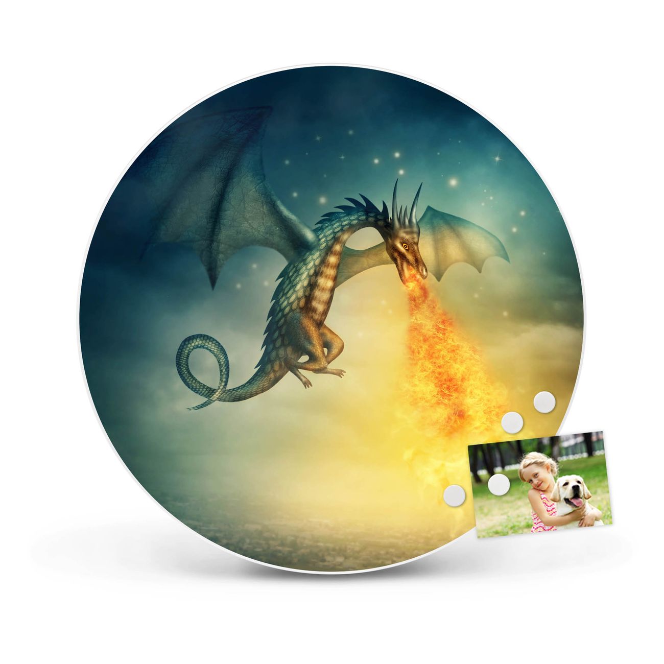 FUNKTION / DESIGN Die banjado Magnettafel mit dem Motiv Motiv Drachen bringt Ordnung in Ihr Zettelchaos. Fotos, Termine, Notizen oder Rezepte lassen Sich hier stilvoll mit Magneten ordnen, Sie behalten alles im Blick. Die Design Magnetwand ist beschreibbar und wieder abwischbar. Mit dieser Pinnwand haben Sie auch ohne Notizen und Magneten ein schönes Dekoelement. Das Format bietet Ihnen ausreichend Platz um alle wichtigen Informationen im Blick zu behalten. DETAILS / NUTZEN Die magnetische Metall Pinnwand besteht aus weiß lackiertem Stahl. Sie hat einen Durchmesser von 47cm. Es befinden sich an den Seiten zwei vorgefertigte Löcher die eine schnelle und unkomplizierte Anbringung ermöglichen. Das Motiv ist mit einem seidenmatten Laminat versehen und schützt so zusätzlich vor Kratzern. Es halten alle handelsüblichen Magneten daran. Wir sind ein kleines Team aus dem Herzen von Sachsen. Wir fertigen alle Artikel von Hand für Sie an, Sie erhalten keine preiswerte Importware. Auf Wunsch können Sie auch Ihr eigenes Foto auf die Magnettafel aufbringen, schreiben Sie uns an.