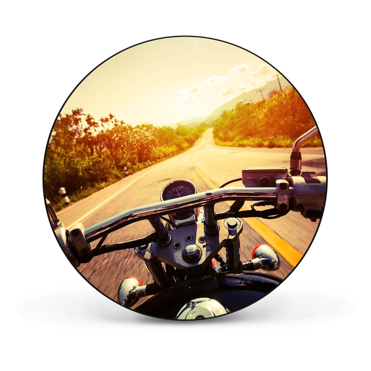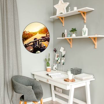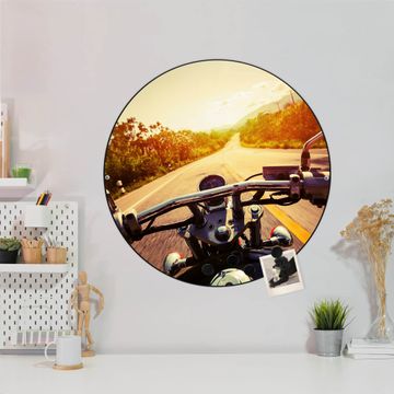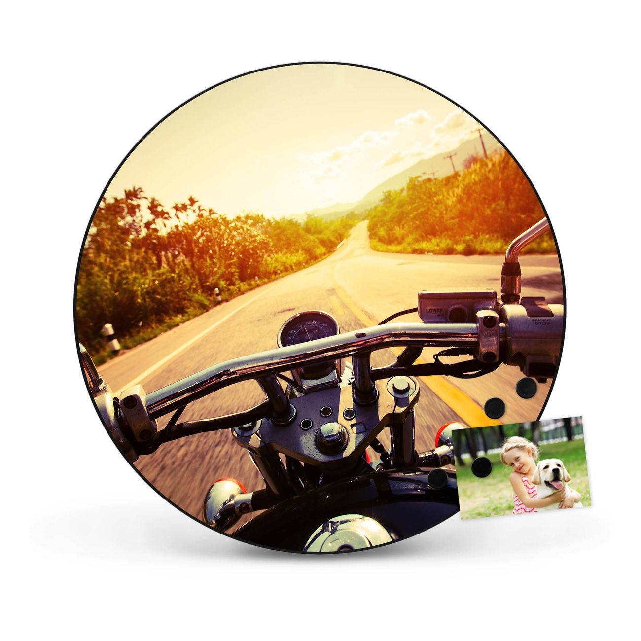 FUNKTION / DESIGN Die banjado Magnettafel mit dem Motiv Motiv Easy Rider bringt Ordnung in Ihr Zettelchaos. Fotos, Termine, Notizen oder Rezepte lassen Sich hier stilvoll mit Magneten ordnen, Sie behalten alles im Blick. Die Design Magnetwand ist beschreibbar und wieder abwischbar. Mit dieser Pinnwand haben Sie auch ohne Notizen und Magneten ein schönes Dekoelement. Das Format bietet Ihnen ausreichend Platz um alle wichtigen Informationen im Blick zu behalten. DETAILS / NUTZEN Die magnetische Metall Pinnwand besteht aus schwarz lackiertem Stahl. Sie hat einen Durchmesser von 47cm. Es befinden sich an den Seiten zwei vorgefertigte Löcher die eine schnelle und unkomplizierte Anbringung ermöglichen. Das Motiv ist mit einem seidenmatten Laminat versehen und schützt so zusätzlich vor Kratzern. Es halten alle handelsüblichen Magneten daran. Wir sind ein kleines Team aus dem Herzen von Sachsen. Wir fertigen alle Artikel von Hand für Sie an, Sie erhalten keine preiswerte Importware. Auf Wunsch können Sie auch Ihr eigenes Foto auf die Magnettafel aufbringen, schreiben Sie uns an.