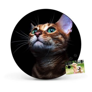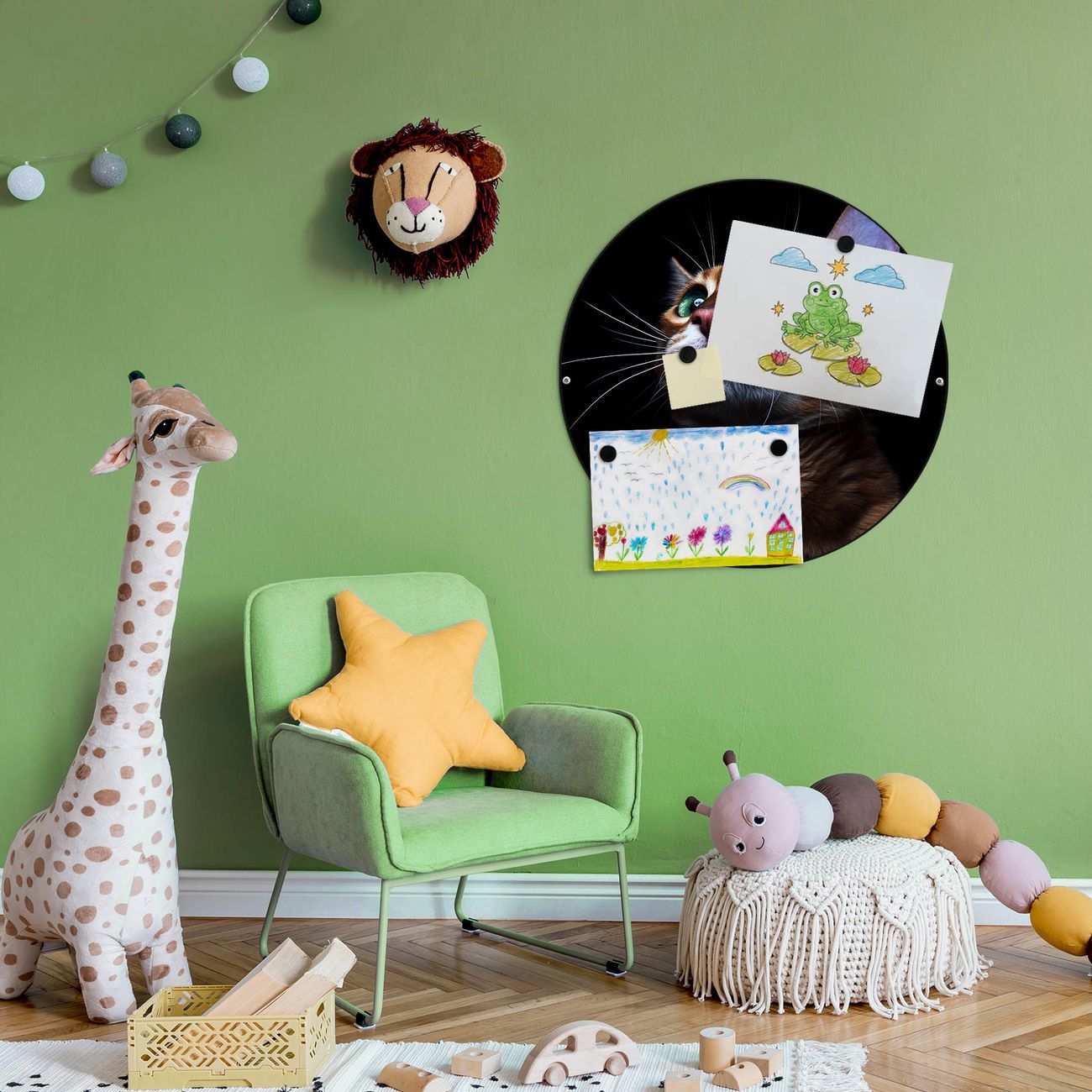 FUNKTION / DESIGN Die banjado Magnettafel mit dem Motiv Motiv Esmeralda bringt Ordnung in Ihr Zettelchaos. Fotos, Termine, Notizen oder Rezepte lassen Sich hier stilvoll mit Magneten ordnen, Sie behalten alles im Blick. Die Design Magnetwand ist beschreibbar und wieder abwischbar. Mit dieser Pinnwand haben Sie auch ohne Notizen und Magneten ein schönes Dekoelement. Das Format bietet Ihnen ausreichend Platz um alle wichtigen Informationen im Blick zu behalten. DETAILS / NUTZEN Die magnetische Metall Pinnwand besteht aus schwarz lackiertem Stahl. Sie hat einen Durchmesser von 47cm. Es befinden sich an den Seiten zwei vorgefertigte Löcher die eine schnelle und unkomplizierte Anbringung ermöglichen. Das Motiv ist mit einem seidenmatten Laminat versehen und schützt so zusätzlich vor Kratzern. Es halten alle handelsüblichen Magneten daran. Wir sind ein kleines Team aus dem Herzen von Sachsen. Wir fertigen alle Artikel von Hand für Sie an, Sie erhalten keine preiswerte Importware. Auf Wunsch können Sie auch Ihr eigenes Foto auf die Magnettafel aufbringen, schreiben Sie uns an.