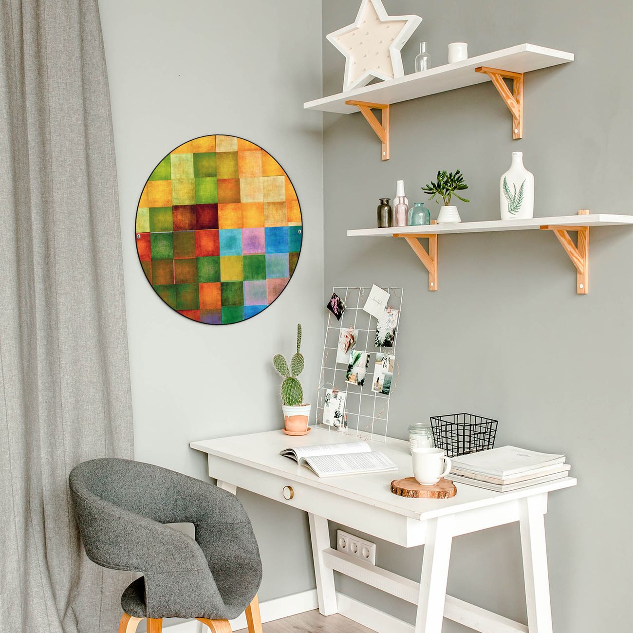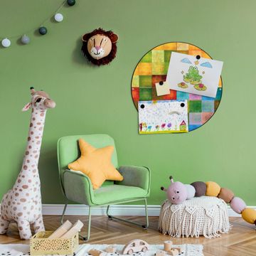 FUNKTION / DESIGN Die banjado Magnettafel mit dem Motiv Motiv Farbkasten 2 bringt Ordnung in Ihr Zettelchaos. Fotos, Termine, Notizen oder Rezepte lassen Sich hier stilvoll mit Magneten ordnen, Sie behalten alles im Blick. Die Design Magnetwand ist beschreibbar und wieder abwischbar. Mit dieser Pinnwand haben Sie auch ohne Notizen und Magneten ein schönes Dekoelement. Das Format bietet Ihnen ausreichend Platz um alle wichtigen Informationen im Blick zu behalten. DETAILS / NUTZEN Die magnetische Metall Pinnwand besteht aus schwarz lackiertem Stahl. Sie hat einen Durchmesser von 47cm. Es befinden sich an den Seiten zwei vorgefertigte Löcher die eine schnelle und unkomplizierte Anbringung ermöglichen. Das Motiv ist mit einem seidenmatten Laminat versehen und schützt so zusätzlich vor Kratzern. Es halten alle handelsüblichen Magneten daran. Wir sind ein kleines Team aus dem Herzen von Sachsen. Wir fertigen alle Artikel von Hand für Sie an, Sie erhalten keine preiswerte Importware. Auf Wunsch können Sie auch Ihr eigenes Foto auf die Magnettafel aufbringen, schreiben Sie uns an.