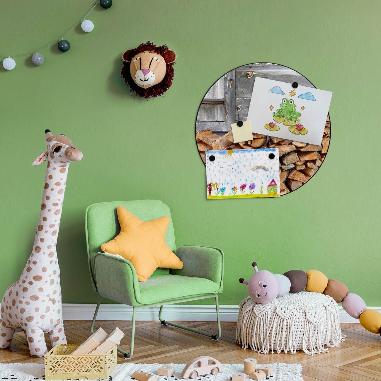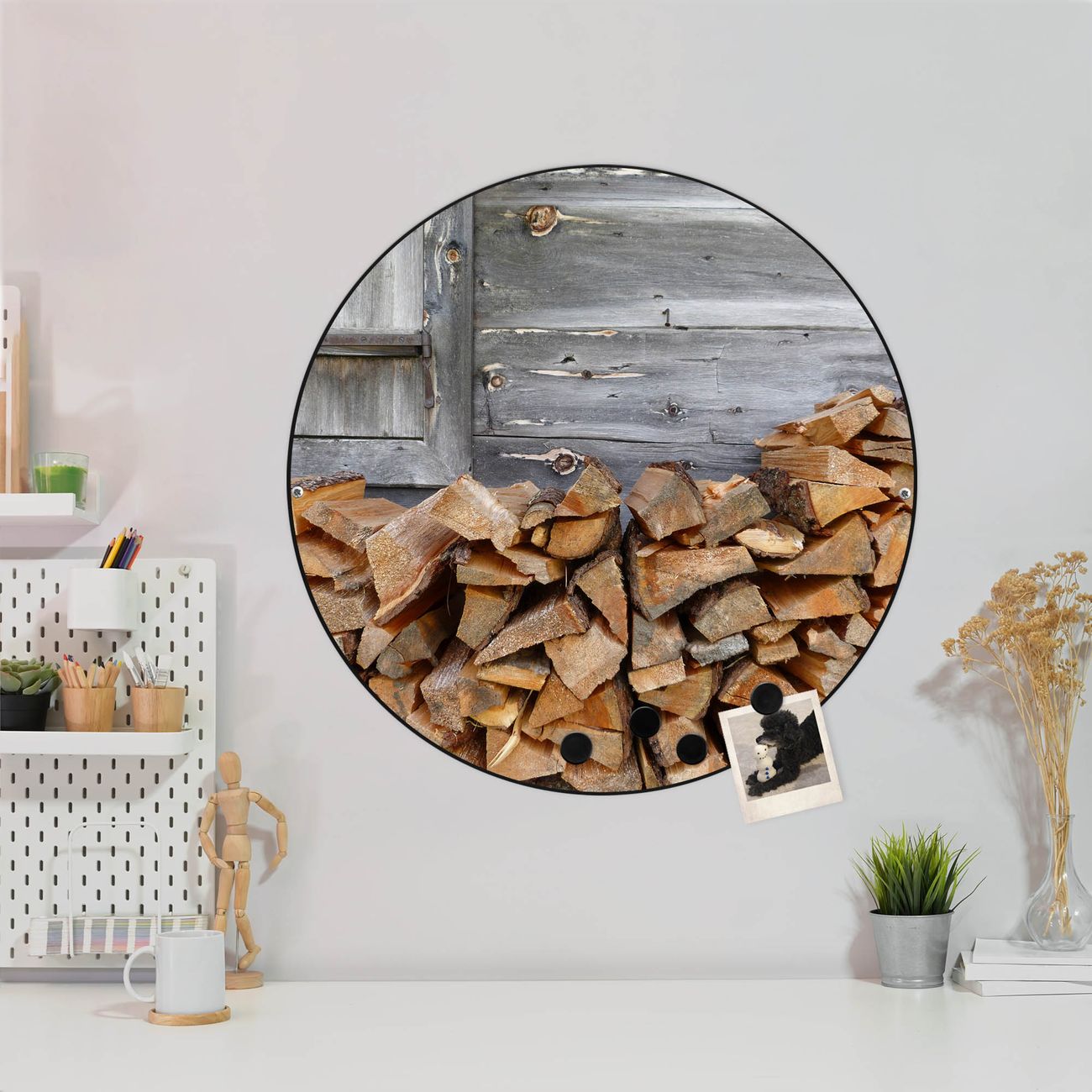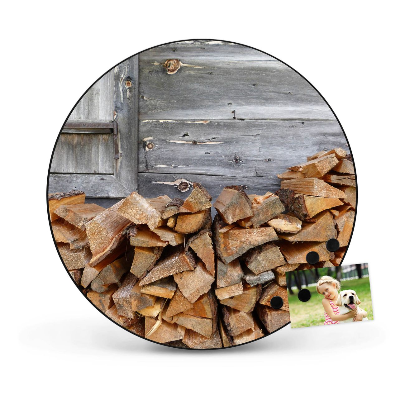 FUNKTION / DESIGN Die banjado Magnettafel mit dem Motiv Motiv Feuerholz bringt Ordnung in Ihr Zettelchaos. Fotos, Termine, Notizen oder Rezepte lassen Sich hier stilvoll mit Magneten ordnen, Sie behalten alles im Blick. Die Design Magnetwand ist beschreibbar und wieder abwischbar. Mit dieser Pinnwand haben Sie auch ohne Notizen und Magneten ein schönes Dekoelement. Das Format bietet Ihnen ausreichend Platz um alle wichtigen Informationen im Blick zu behalten. DETAILS / NUTZEN Die magnetische Metall Pinnwand besteht aus schwarz lackiertem Stahl. Sie hat einen Durchmesser von 47cm. Es befinden sich an den Seiten zwei vorgefertigte Löcher die eine schnelle und unkomplizierte Anbringung ermöglichen. Das Motiv ist mit einem seidenmatten Laminat versehen und schützt so zusätzlich vor Kratzern. Es halten alle handelsüblichen Magneten daran. Wir sind ein kleines Team aus dem Herzen von Sachsen. Wir fertigen alle Artikel von Hand für Sie an, Sie erhalten keine preiswerte Importware. Auf Wunsch können Sie auch Ihr eigenes Foto auf die Magnettafel aufbringen, schreiben Sie uns an.