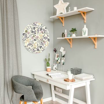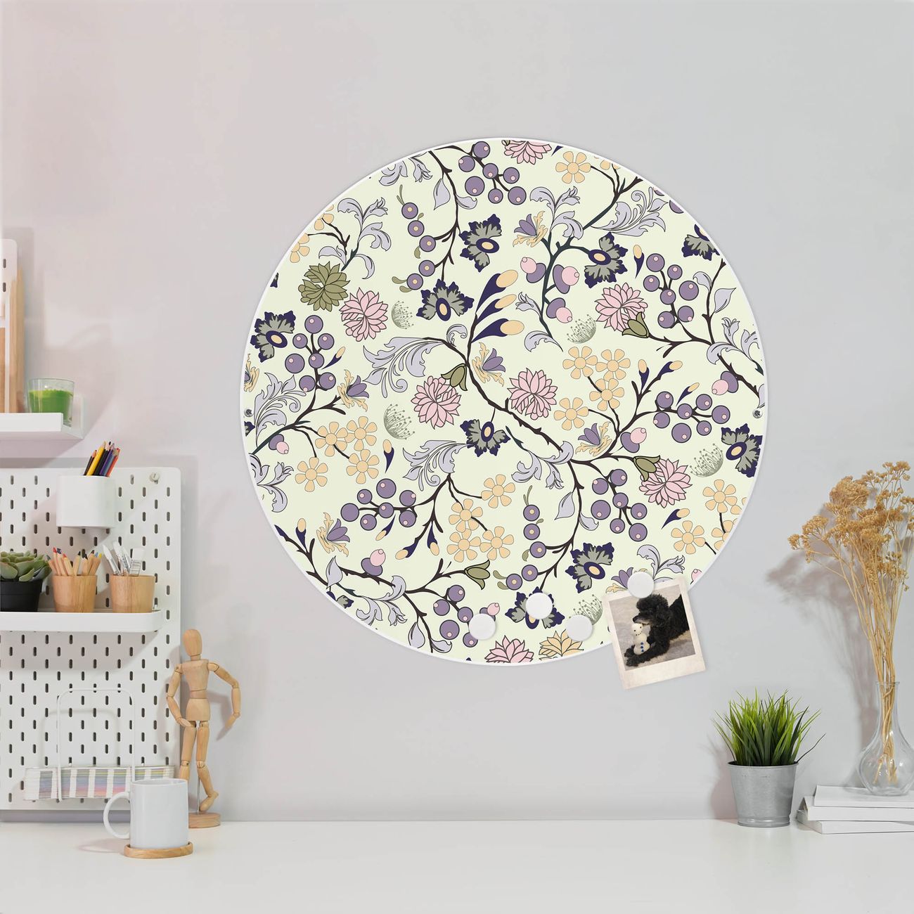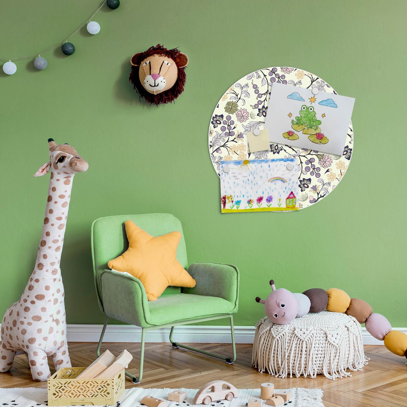 FUNKTION / DESIGN Die banjado Magnettafel mit dem Motiv Motiv Florale Tapete bringt Ordnung in Ihr Zettelchaos. Fotos, Termine, Notizen oder Rezepte lassen Sich hier stilvoll mit Magneten ordnen, Sie behalten alles im Blick. Die Design Magnetwand ist beschreibbar und wieder abwischbar. Mit dieser Pinnwand haben Sie auch ohne Notizen und Magneten ein schönes Dekoelement. Das Format bietet Ihnen ausreichend Platz um alle wichtigen Informationen im Blick zu behalten. DETAILS / NUTZEN Die magnetische Metall Pinnwand besteht aus weiß lackiertem Stahl. Sie hat einen Durchmesser von 47cm. Es befinden sich an den Seiten zwei vorgefertigte Löcher die eine schnelle und unkomplizierte Anbringung ermöglichen. Das Motiv ist mit einem seidenmatten Laminat versehen und schützt so zusätzlich vor Kratzern. Es halten alle handelsüblichen Magneten daran. Wir sind ein kleines Team aus dem Herzen von Sachsen. Wir fertigen alle Artikel von Hand für Sie an, Sie erhalten keine preiswerte Importware. Auf Wunsch können Sie auch Ihr eigenes Foto auf die Magnettafel aufbringen, schreiben Sie uns an.