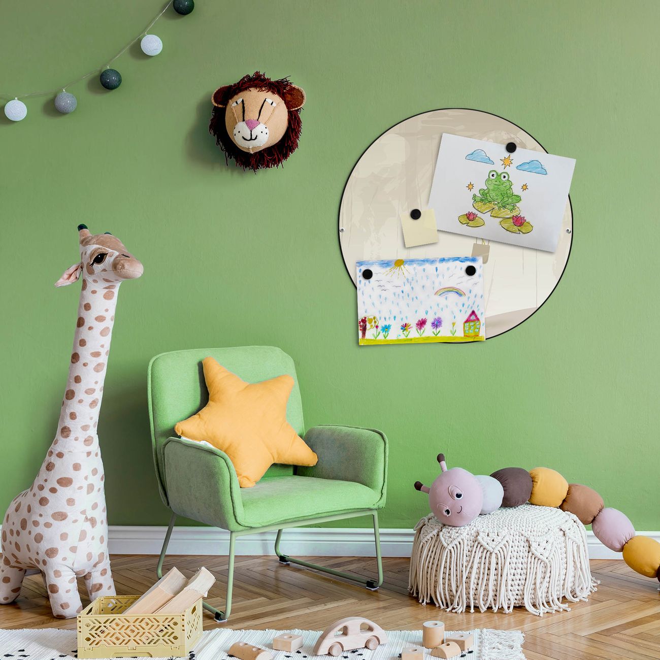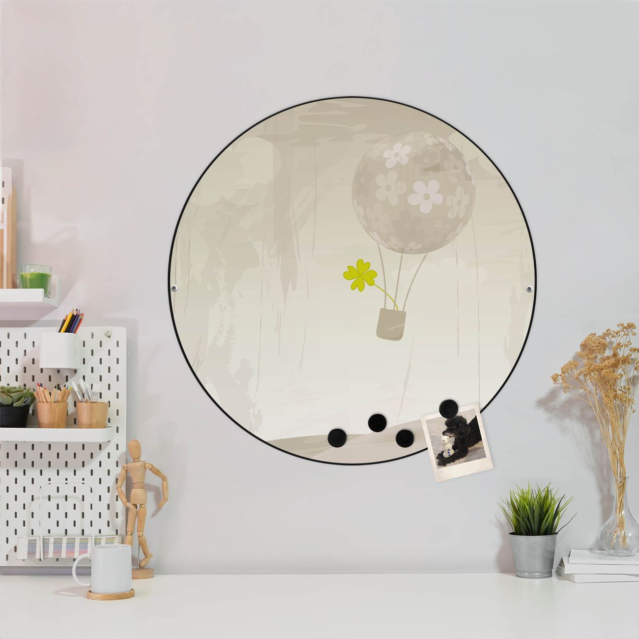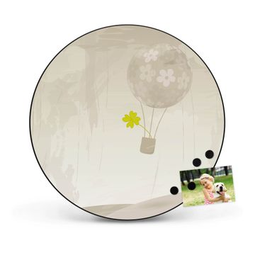 FUNKTION / DESIGN Die banjado Magnettafel mit dem Motiv Motiv Flüchtiges Glück bringt Ordnung in Ihr Zettelchaos. Fotos, Termine, Notizen oder Rezepte lassen Sich hier stilvoll mit Magneten ordnen, Sie behalten alles im Blick. Die Design Magnetwand ist beschreibbar und wieder abwischbar. Mit dieser Pinnwand haben Sie auch ohne Notizen und Magneten ein schönes Dekoelement. Das Format bietet Ihnen ausreichend Platz um alle wichtigen Informationen im Blick zu behalten. DETAILS / NUTZEN Die magnetische Metall Pinnwand besteht aus schwarz lackiertem Stahl. Sie hat einen Durchmesser von 47cm. Es befinden sich an den Seiten zwei vorgefertigte Löcher die eine schnelle und unkomplizierte Anbringung ermöglichen. Das Motiv ist mit einem seidenmatten Laminat versehen und schützt so zusätzlich vor Kratzern. Es halten alle handelsüblichen Magneten daran. Wir sind ein kleines Team aus dem Herzen von Sachsen. Wir fertigen alle Artikel von Hand für Sie an, Sie erhalten keine preiswerte Importware. Auf Wunsch können Sie auch Ihr eigenes Foto auf die Magnettafel aufbringen, schreiben Sie uns an.