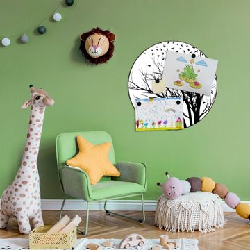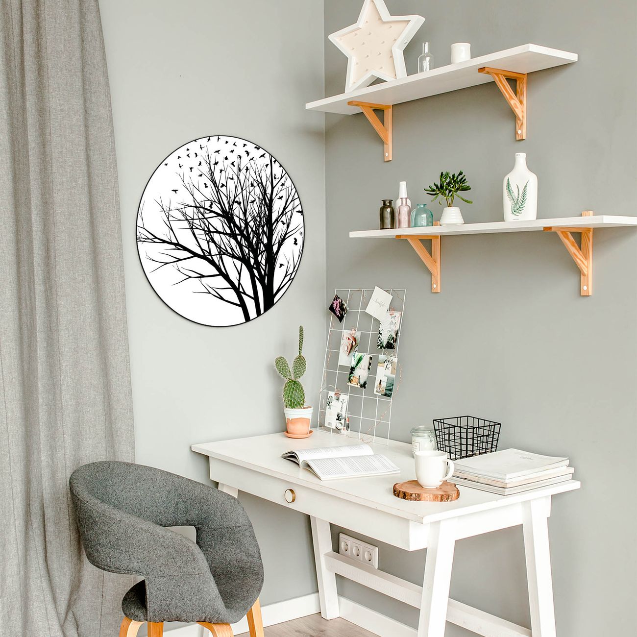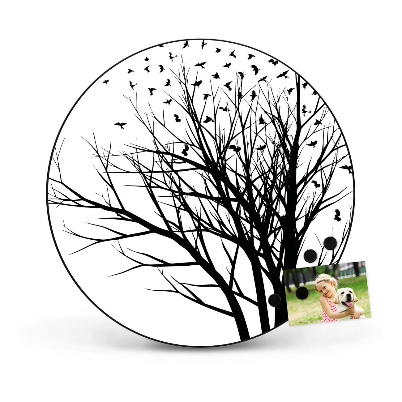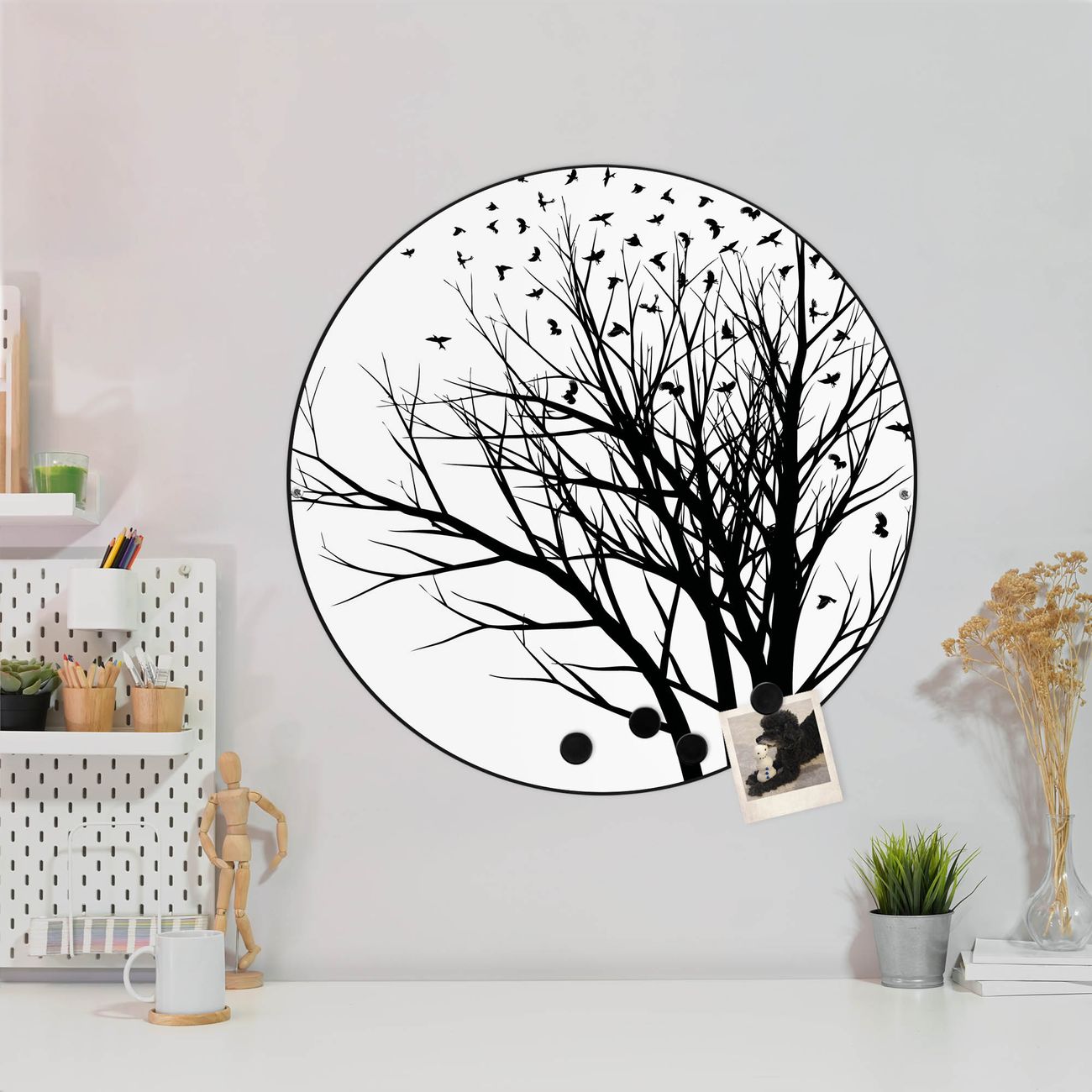 FUNKTION / DESIGN Die banjado Magnettafel mit dem Motiv Motiv Fortfliegen bringt Ordnung in Ihr Zettelchaos. Fotos, Termine, Notizen oder Rezepte lassen Sich hier stilvoll mit Magneten ordnen, Sie behalten alles im Blick. Die Design Magnetwand ist beschreibbar und wieder abwischbar. Mit dieser Pinnwand haben Sie auch ohne Notizen und Magneten ein schönes Dekoelement. Das Format bietet Ihnen ausreichend Platz um alle wichtigen Informationen im Blick zu behalten. DETAILS / NUTZEN Die magnetische Metall Pinnwand besteht aus schwarz lackiertem Stahl. Sie hat einen Durchmesser von 47cm. Es befinden sich an den Seiten zwei vorgefertigte Löcher die eine schnelle und unkomplizierte Anbringung ermöglichen. Das Motiv ist mit einem seidenmatten Laminat versehen und schützt so zusätzlich vor Kratzern. Es halten alle handelsüblichen Magneten daran. Wir sind ein kleines Team aus dem Herzen von Sachsen. Wir fertigen alle Artikel von Hand für Sie an, Sie erhalten keine preiswerte Importware. Auf Wunsch können Sie auch Ihr eigenes Foto auf die Magnettafel aufbringen, schreiben Sie uns an.