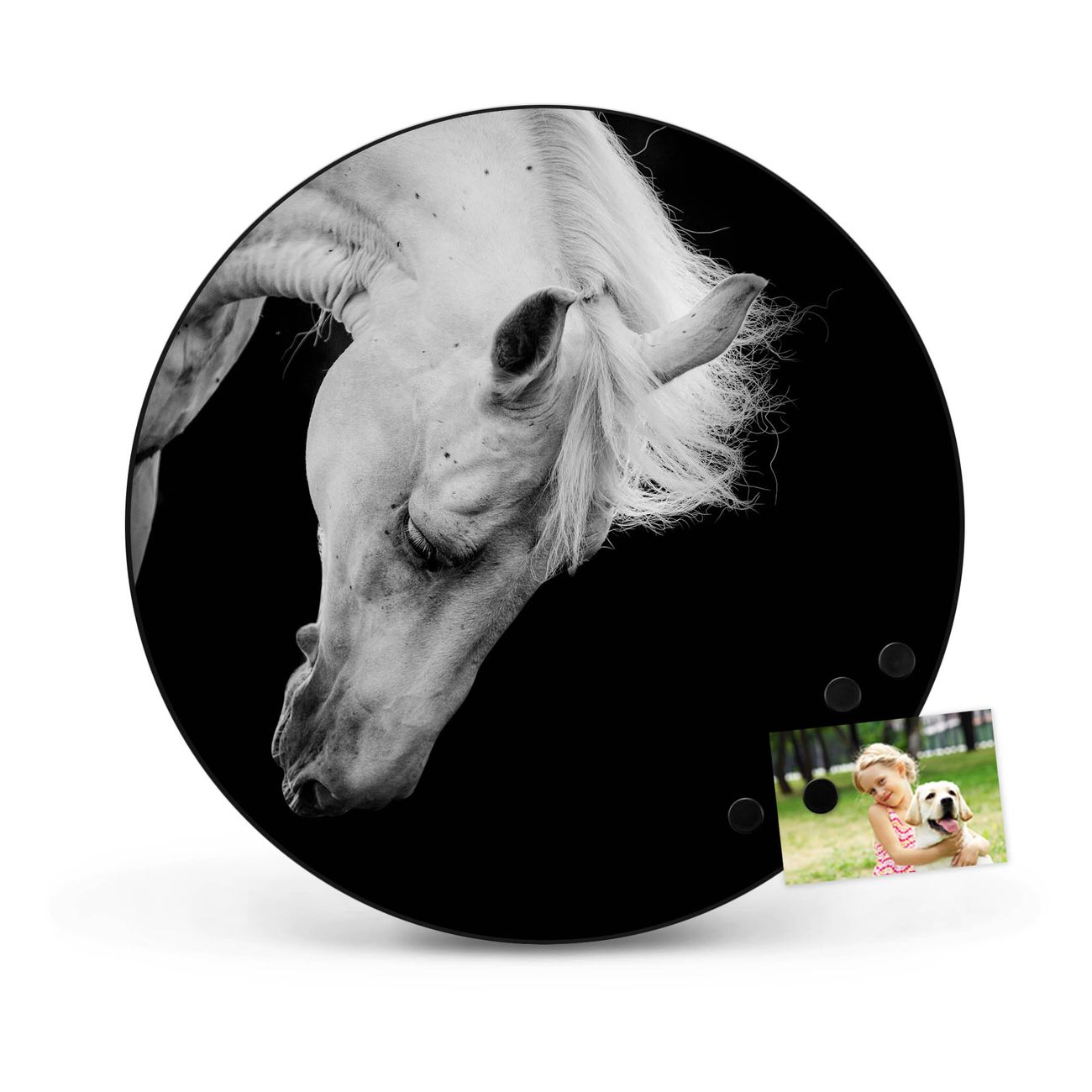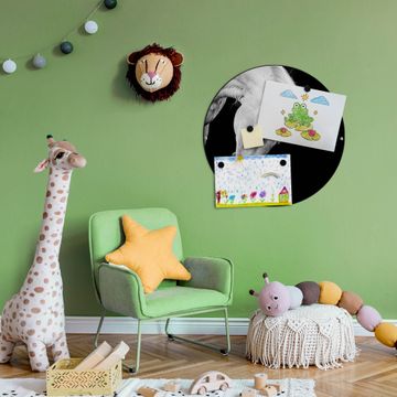 FUNKTION / DESIGN Die banjado Magnettafel mit dem Motiv Motiv Frederik bringt Ordnung in Ihr Zettelchaos. Fotos, Termine, Notizen oder Rezepte lassen Sich hier stilvoll mit Magneten ordnen, Sie behalten alles im Blick. Die Design Magnetwand ist beschreibbar und wieder abwischbar. Mit dieser Pinnwand haben Sie auch ohne Notizen und Magneten ein schönes Dekoelement. Das Format bietet Ihnen ausreichend Platz um alle wichtigen Informationen im Blick zu behalten. DETAILS / NUTZEN Die magnetische Metall Pinnwand besteht aus schwarz lackiertem Stahl. Sie hat einen Durchmesser von 47cm. Es befinden sich an den Seiten zwei vorgefertigte Löcher die eine schnelle und unkomplizierte Anbringung ermöglichen. Das Motiv ist mit einem seidenmatten Laminat versehen und schützt so zusätzlich vor Kratzern. Es halten alle handelsüblichen Magneten daran. Wir sind ein kleines Team aus dem Herzen von Sachsen. Wir fertigen alle Artikel von Hand für Sie an, Sie erhalten keine preiswerte Importware. Auf Wunsch können Sie auch Ihr eigenes Foto auf die Magnettafel aufbringen, schreiben Sie uns an.