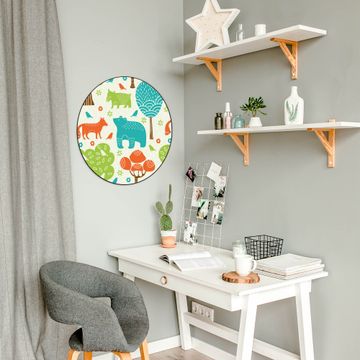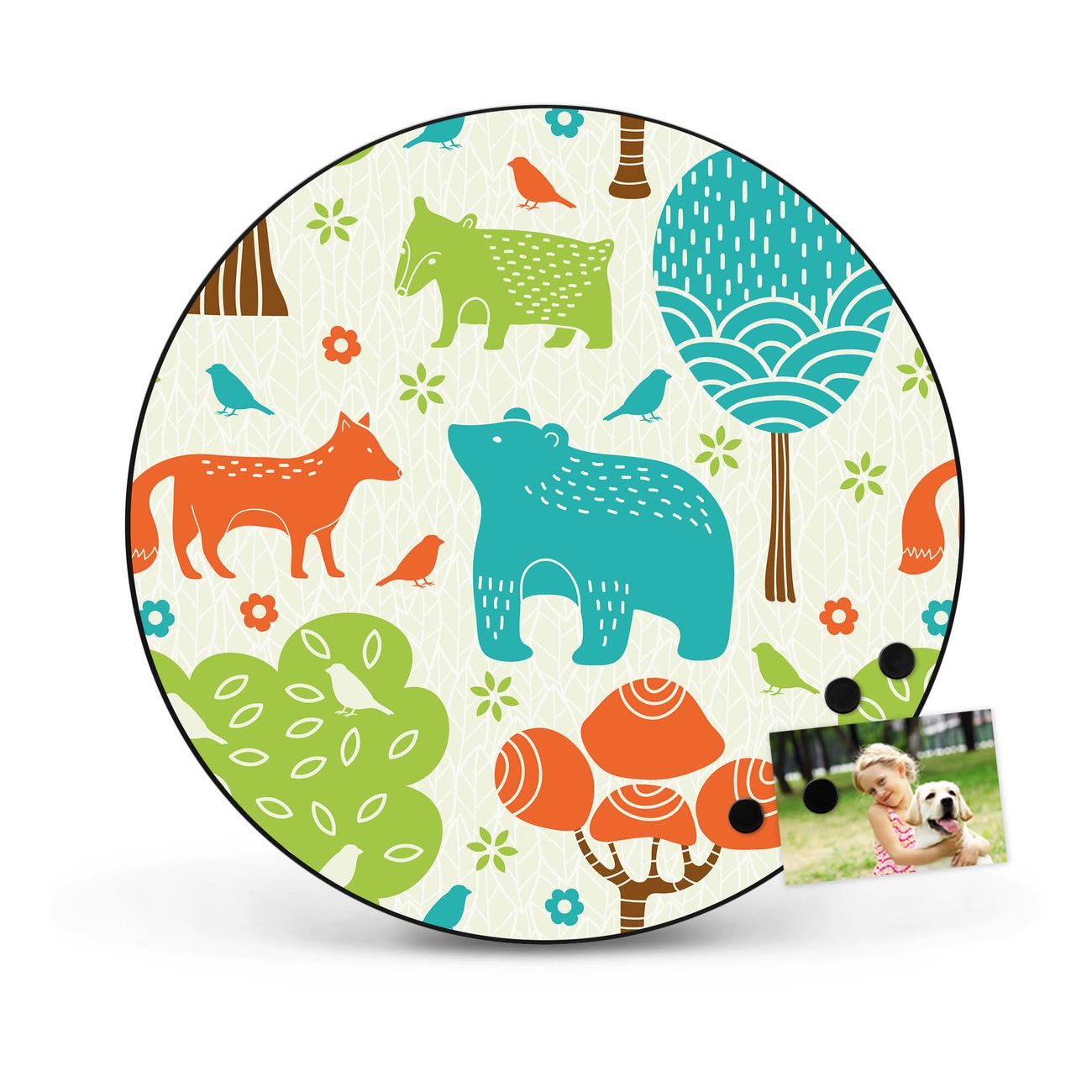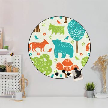 Stahl Magnettafel rund 47cm Fuchs Bär Wald