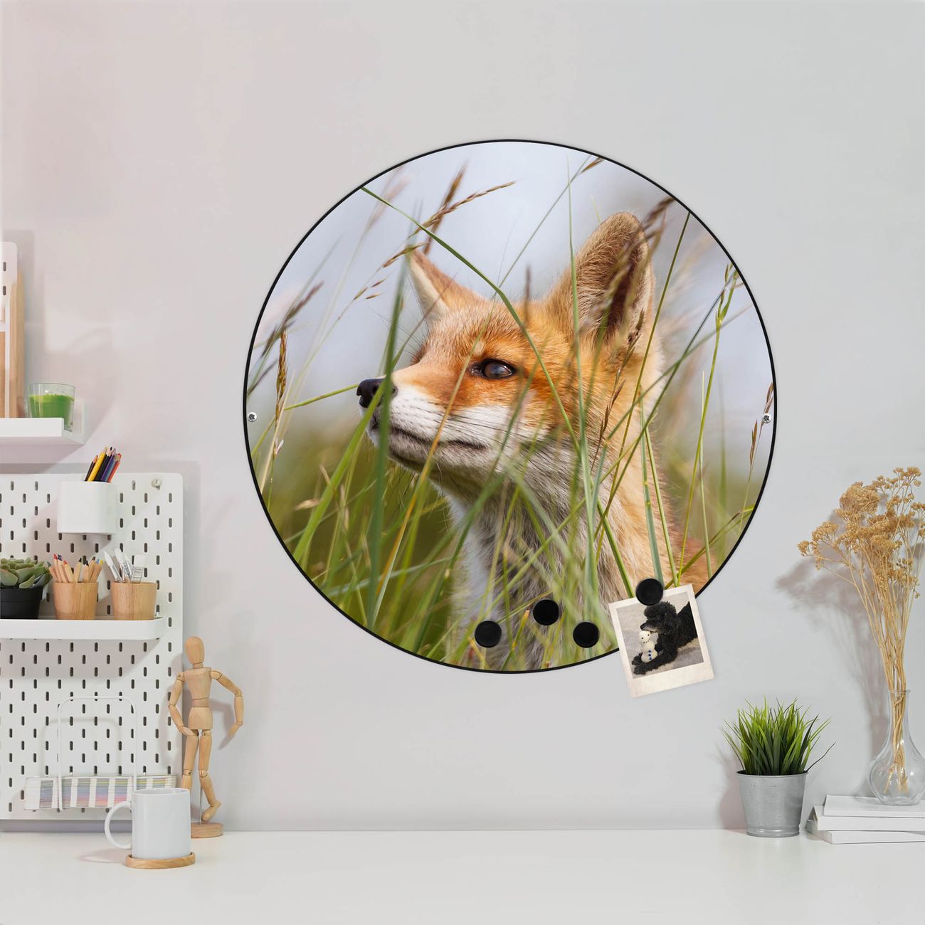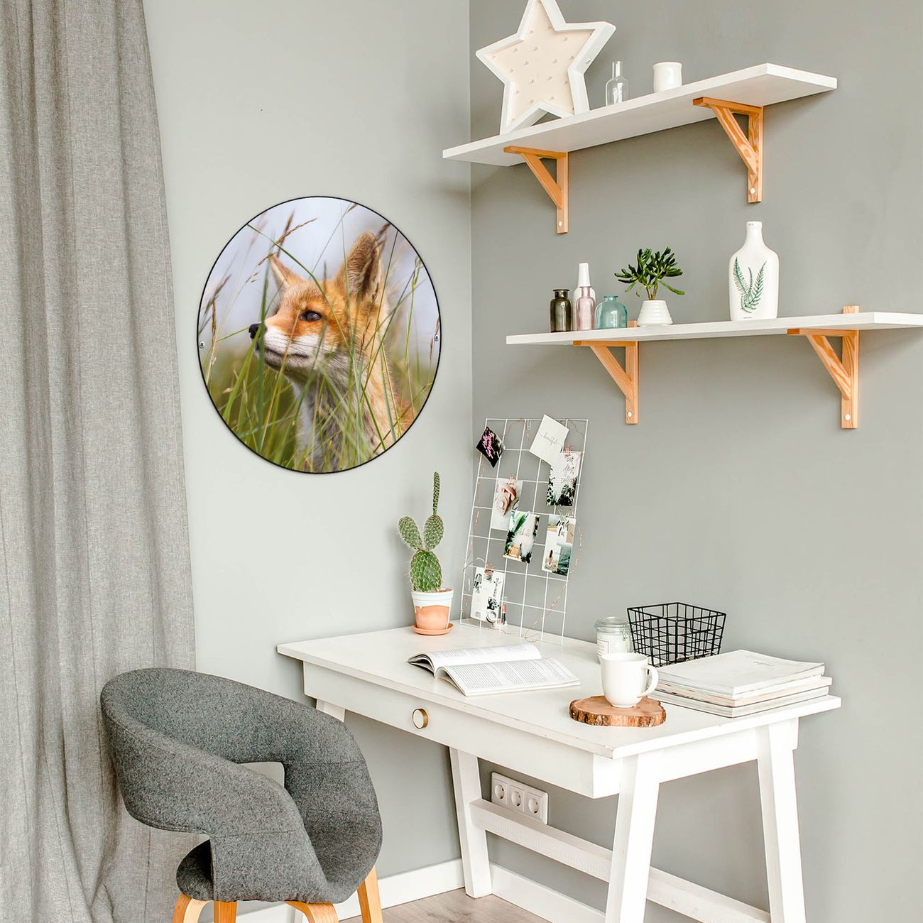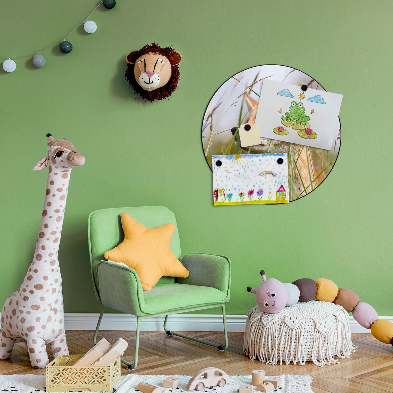 FUNKTION / DESIGN Die banjado Magnettafel mit dem Motiv Motiv Fuchs bringt Ordnung in Ihr Zettelchaos. Fotos, Termine, Notizen oder Rezepte lassen Sich hier stilvoll mit Magneten ordnen, Sie behalten alles im Blick. Die Design Magnetwand ist beschreibbar und wieder abwischbar. Mit dieser Pinnwand haben Sie auch ohne Notizen und Magneten ein schönes Dekoelement. Das Format bietet Ihnen ausreichend Platz um alle wichtigen Informationen im Blick zu behalten. DETAILS / NUTZEN Die magnetische Metall Pinnwand besteht aus schwarz lackiertem Stahl. Sie hat einen Durchmesser von 47cm. Es befinden sich an den Seiten zwei vorgefertigte Löcher die eine schnelle und unkomplizierte Anbringung ermöglichen. Das Motiv ist mit einem seidenmatten Laminat versehen und schützt so zusätzlich vor Kratzern. Es halten alle handelsüblichen Magneten daran. Wir sind ein kleines Team aus dem Herzen von Sachsen. Wir fertigen alle Artikel von Hand für Sie an, Sie erhalten keine preiswerte Importware. Auf Wunsch können Sie auch Ihr eigenes Foto auf die Magnettafel aufbringen, schreiben Sie uns an.