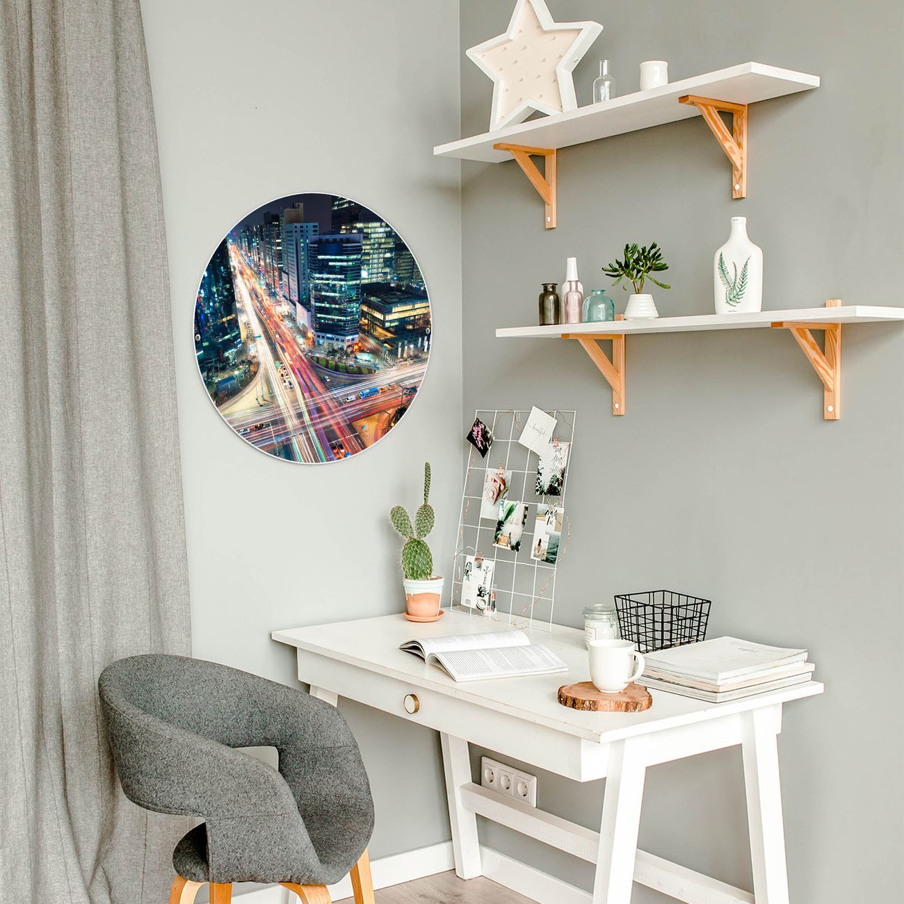 FUNKTION / DESIGN Die banjado Magnettafel mit dem Motiv Motiv Gangnam Bei Nacht bringt Ordnung in Ihr Zettelchaos. Fotos, Termine, Notizen oder Rezepte lassen Sich hier stilvoll mit Magneten ordnen, Sie behalten alles im Blick. Die Design Magnetwand ist beschreibbar und wieder abwischbar. Mit dieser Pinnwand haben Sie auch ohne Notizen und Magneten ein schönes Dekoelement. Das Format bietet Ihnen ausreichend Platz um alle wichtigen Informationen im Blick zu behalten. DETAILS / NUTZEN Die magnetische Metall Pinnwand besteht aus weiß lackiertem Stahl. Sie hat einen Durchmesser von 47cm. Es befinden sich an den Seiten zwei vorgefertigte Löcher die eine schnelle und unkomplizierte Anbringung ermöglichen. Das Motiv ist mit einem seidenmatten Laminat versehen und schützt so zusätzlich vor Kratzern. Es halten alle handelsüblichen Magneten daran. Wir sind ein kleines Team aus dem Herzen von Sachsen. Wir fertigen alle Artikel von Hand für Sie an, Sie erhalten keine preiswerte Importware. Auf Wunsch können Sie auch Ihr eigenes Foto auf die Magnettafel aufbringen, schreiben Sie uns an.