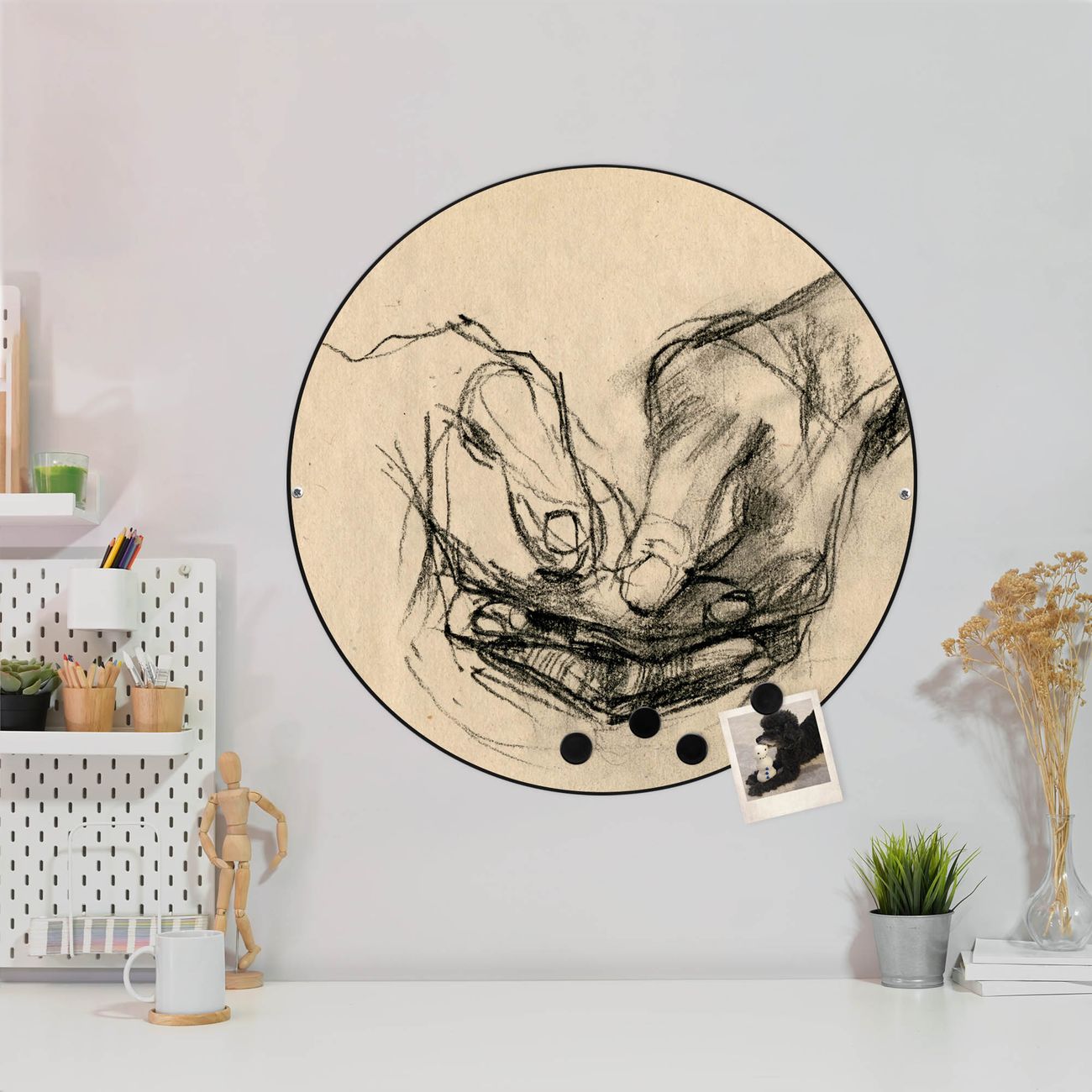 Stahl Magnettafel rund 47cm Gefaltete Hände