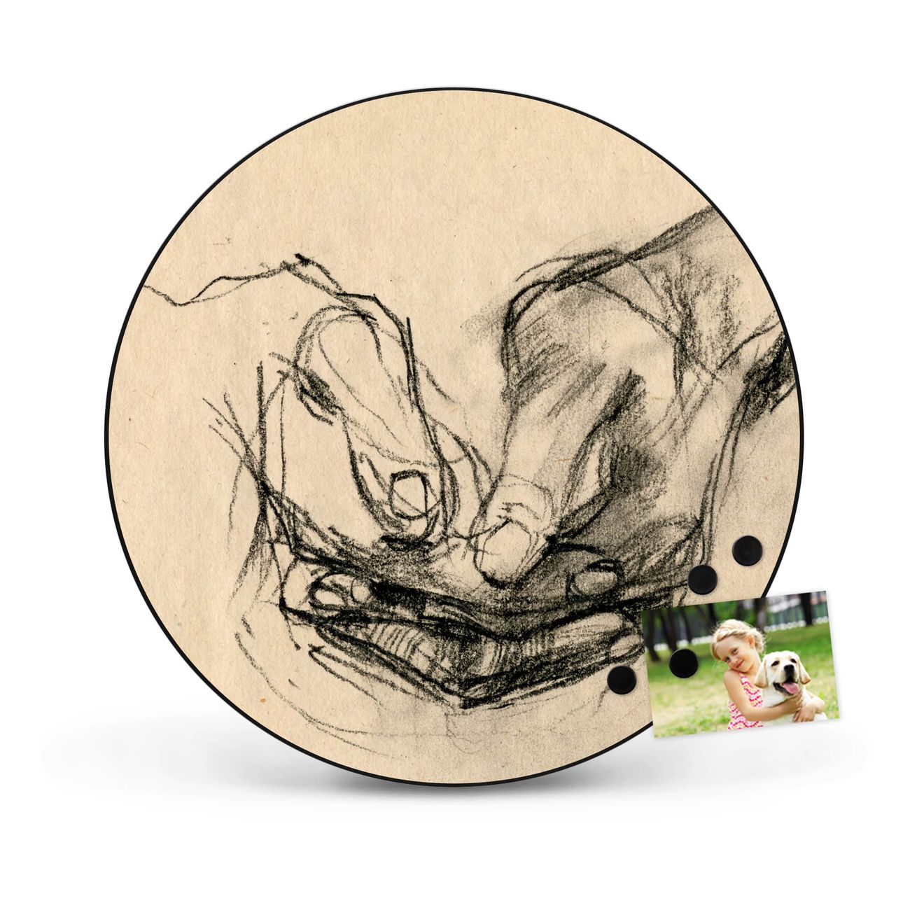 FUNKTION / DESIGN Die banjado Magnettafel mit dem Motiv Motiv Gefaltete Hände bringt Ordnung in Ihr Zettelchaos. Fotos, Termine, Notizen oder Rezepte lassen Sich hier stilvoll mit Magneten ordnen, Sie behalten alles im Blick. Die Design Magnetwand ist beschreibbar und wieder abwischbar. Mit dieser Pinnwand haben Sie auch ohne Notizen und Magneten ein schönes Dekoelement. Das Format bietet Ihnen ausreichend Platz um alle wichtigen Informationen im Blick zu behalten. DETAILS / NUTZEN Die magnetische Metall Pinnwand besteht aus schwarz lackiertem Stahl. Sie hat einen Durchmesser von 47cm. Es befinden sich an den Seiten zwei vorgefertigte Löcher die eine schnelle und unkomplizierte Anbringung ermöglichen. Das Motiv ist mit einem seidenmatten Laminat versehen und schützt so zusätzlich vor Kratzern. Es halten alle handelsüblichen Magneten daran. Wir sind ein kleines Team aus dem Herzen von Sachsen. Wir fertigen alle Artikel von Hand für Sie an, Sie erhalten keine preiswerte Importware. Auf Wunsch können Sie auch Ihr eigenes Foto auf die Magnettafel aufbringen, schreiben Sie uns an.