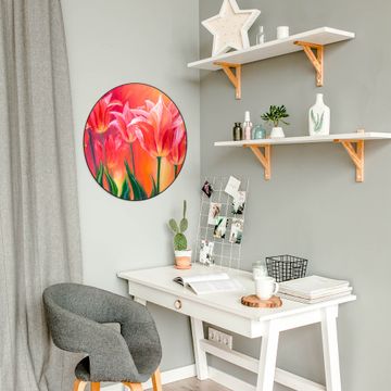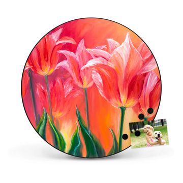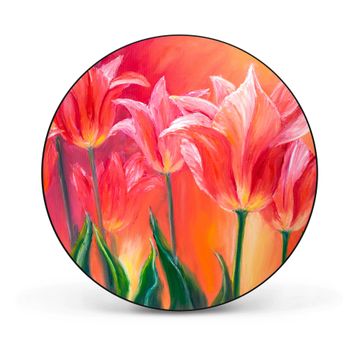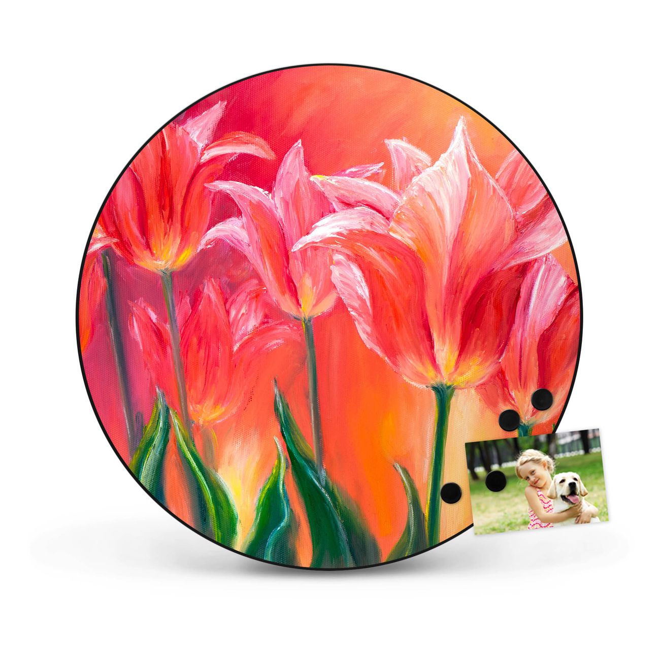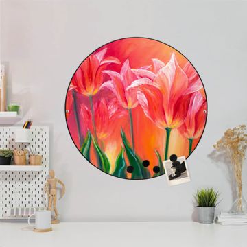 Stahl Magnettafel rund 47cm Gemalte Tulpen