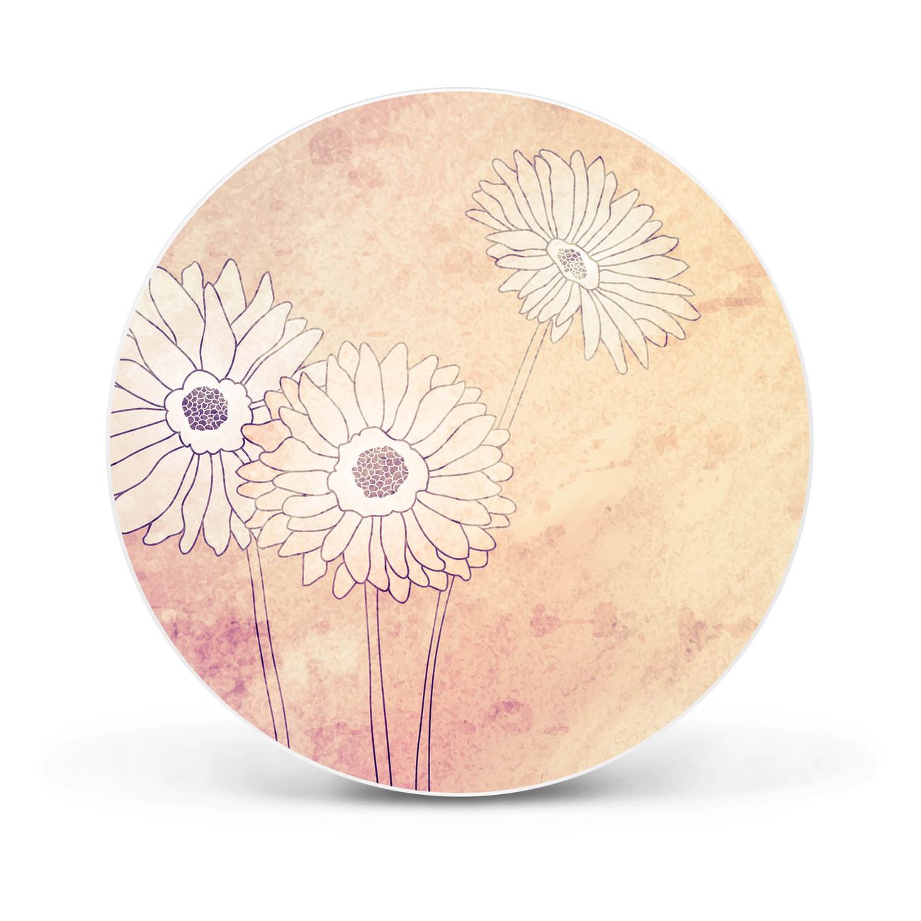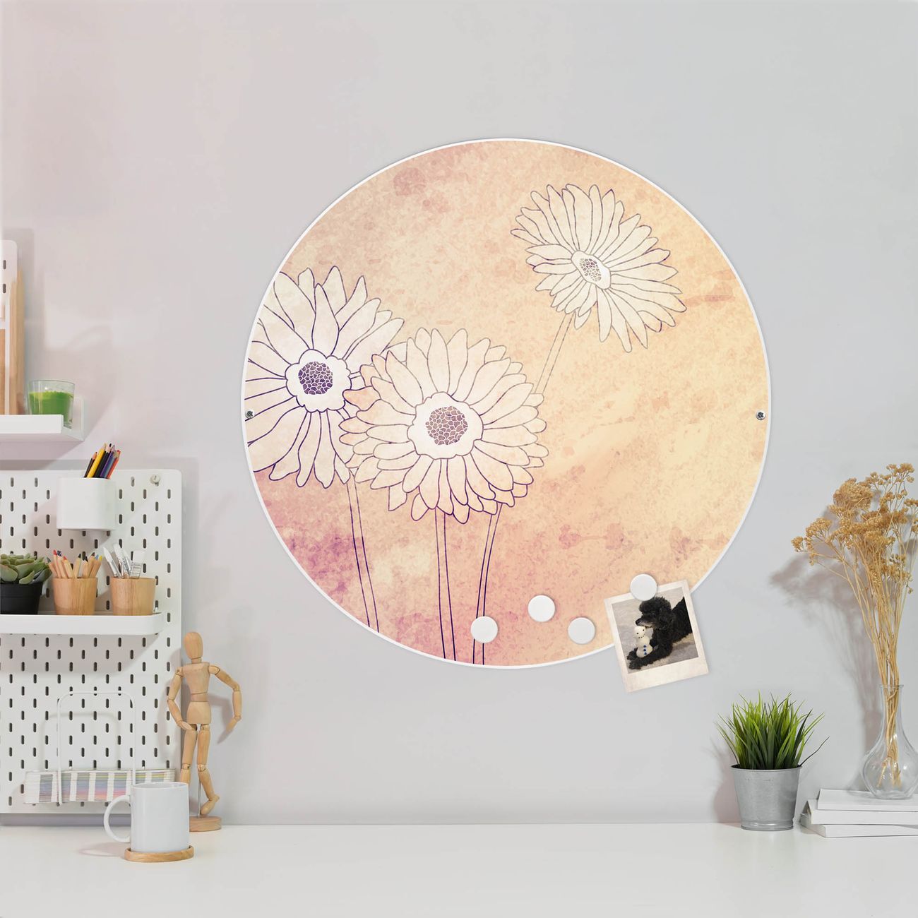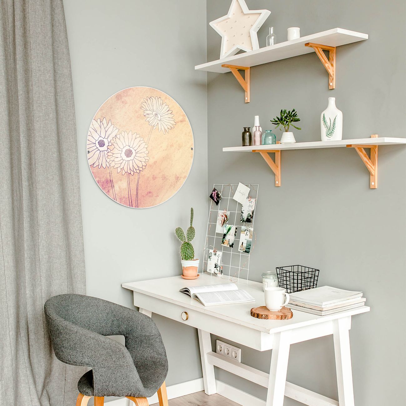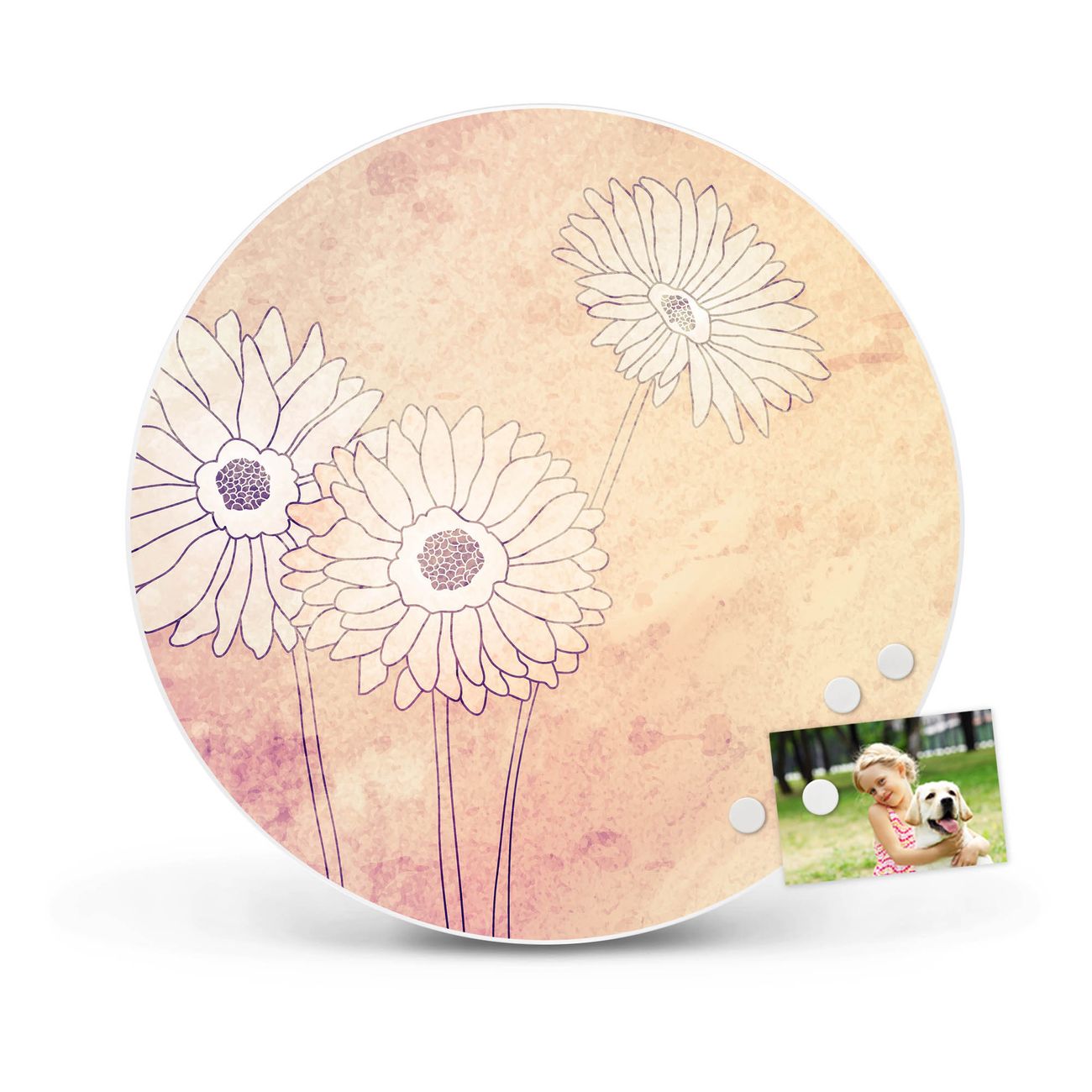 FUNKTION / DESIGN Die banjado Magnettafel mit dem Motiv Motiv Gerbera bringt Ordnung in Ihr Zettelchaos. Fotos, Termine, Notizen oder Rezepte lassen Sich hier stilvoll mit Magneten ordnen, Sie behalten alles im Blick. Die Design Magnetwand ist beschreibbar und wieder abwischbar. Mit dieser Pinnwand haben Sie auch ohne Notizen und Magneten ein schönes Dekoelement. Das Format bietet Ihnen ausreichend Platz um alle wichtigen Informationen im Blick zu behalten. DETAILS / NUTZEN Die magnetische Metall Pinnwand besteht aus weiß lackiertem Stahl. Sie hat einen Durchmesser von 47cm. Es befinden sich an den Seiten zwei vorgefertigte Löcher die eine schnelle und unkomplizierte Anbringung ermöglichen. Das Motiv ist mit einem seidenmatten Laminat versehen und schützt so zusätzlich vor Kratzern. Es halten alle handelsüblichen Magneten daran. Wir sind ein kleines Team aus dem Herzen von Sachsen. Wir fertigen alle Artikel von Hand für Sie an, Sie erhalten keine preiswerte Importware. Auf Wunsch können Sie auch Ihr eigenes Foto auf die Magnettafel aufbringen, schreiben Sie uns an.