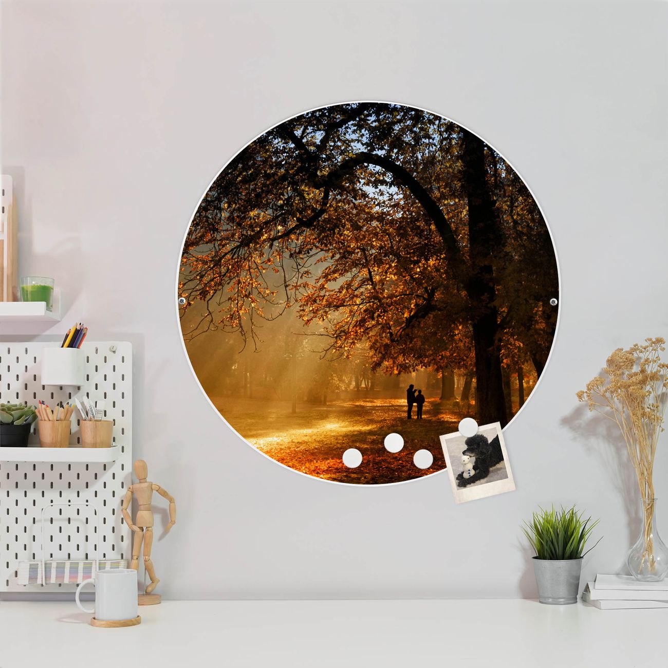 Stahl Magnettafel rund 47cm Goldener Herbst