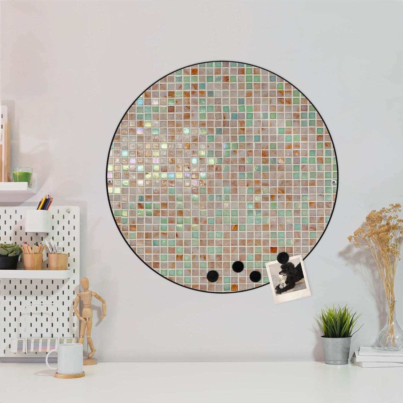 Stahl Magnettafel rund 47cm Grüne Fliesen