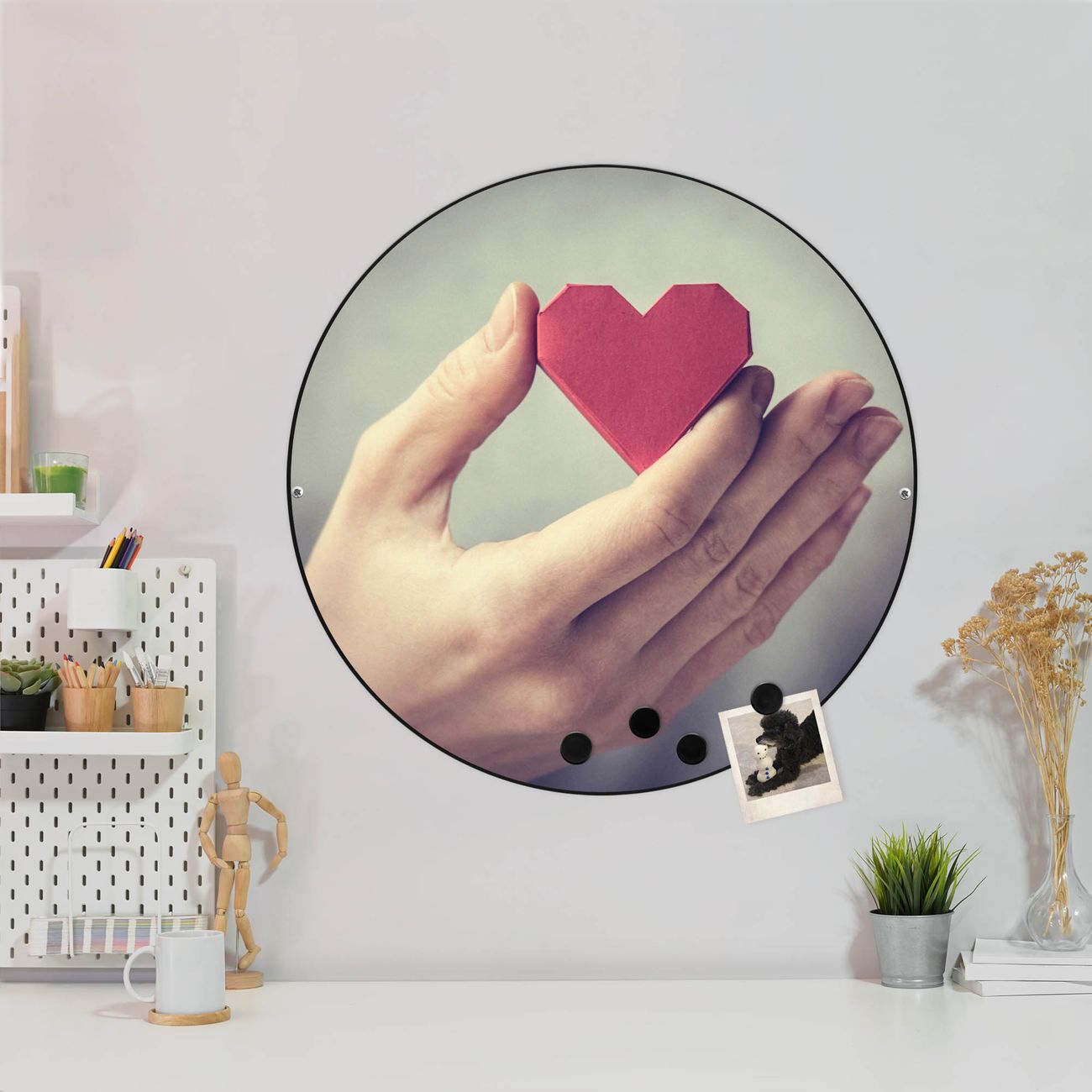 Stahl Magnettafel rund 47cm Hand Aufs Herz