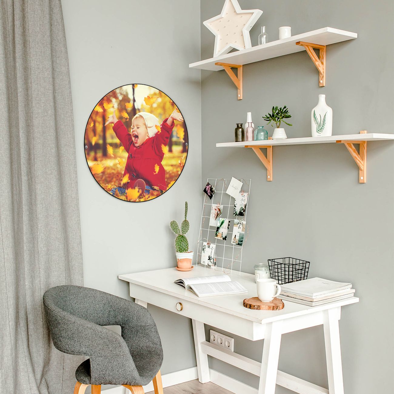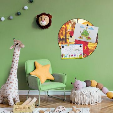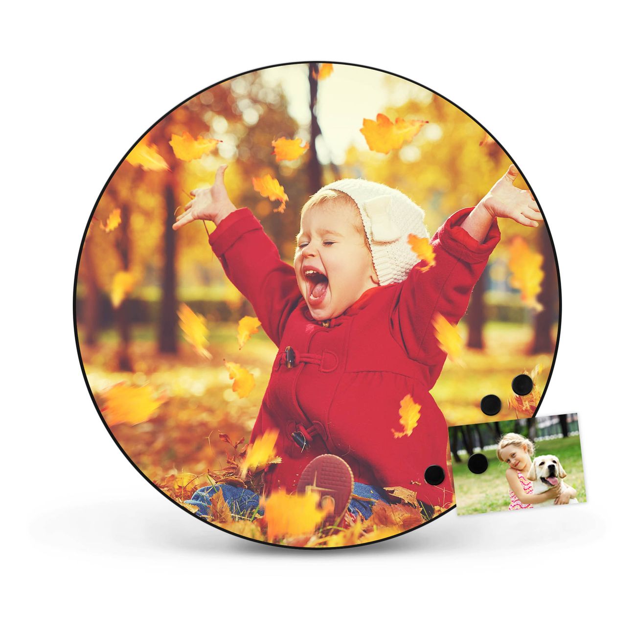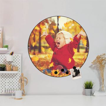 FUNKTION / DESIGN Die banjado Magnettafel mit dem Motiv Motiv Herbstfreude bringt Ordnung in Ihr Zettelchaos. Fotos, Termine, Notizen oder Rezepte lassen Sich hier stilvoll mit Magneten ordnen, Sie behalten alles im Blick. Die Design Magnetwand ist beschreibbar und wieder abwischbar. Mit dieser Pinnwand haben Sie auch ohne Notizen und Magneten ein schönes Dekoelement. Das Format bietet Ihnen ausreichend Platz um alle wichtigen Informationen im Blick zu behalten. DETAILS / NUTZEN Die magnetische Metall Pinnwand besteht aus schwarz lackiertem Stahl. Sie hat einen Durchmesser von 47cm. Es befinden sich an den Seiten zwei vorgefertigte Löcher die eine schnelle und unkomplizierte Anbringung ermöglichen. Das Motiv ist mit einem seidenmatten Laminat versehen und schützt so zusätzlich vor Kratzern. Es halten alle handelsüblichen Magneten daran. Wir sind ein kleines Team aus dem Herzen von Sachsen. Wir fertigen alle Artikel von Hand für Sie an, Sie erhalten keine preiswerte Importware. Auf Wunsch können Sie auch Ihr eigenes Foto auf die Magnettafel aufbringen, schreiben Sie uns an.