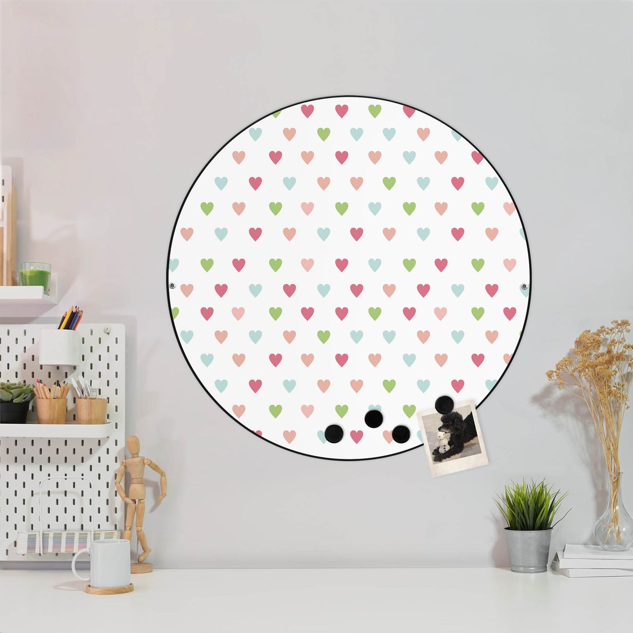 Stahl Magnettafel rund 47cm Herzen Auf Weiß