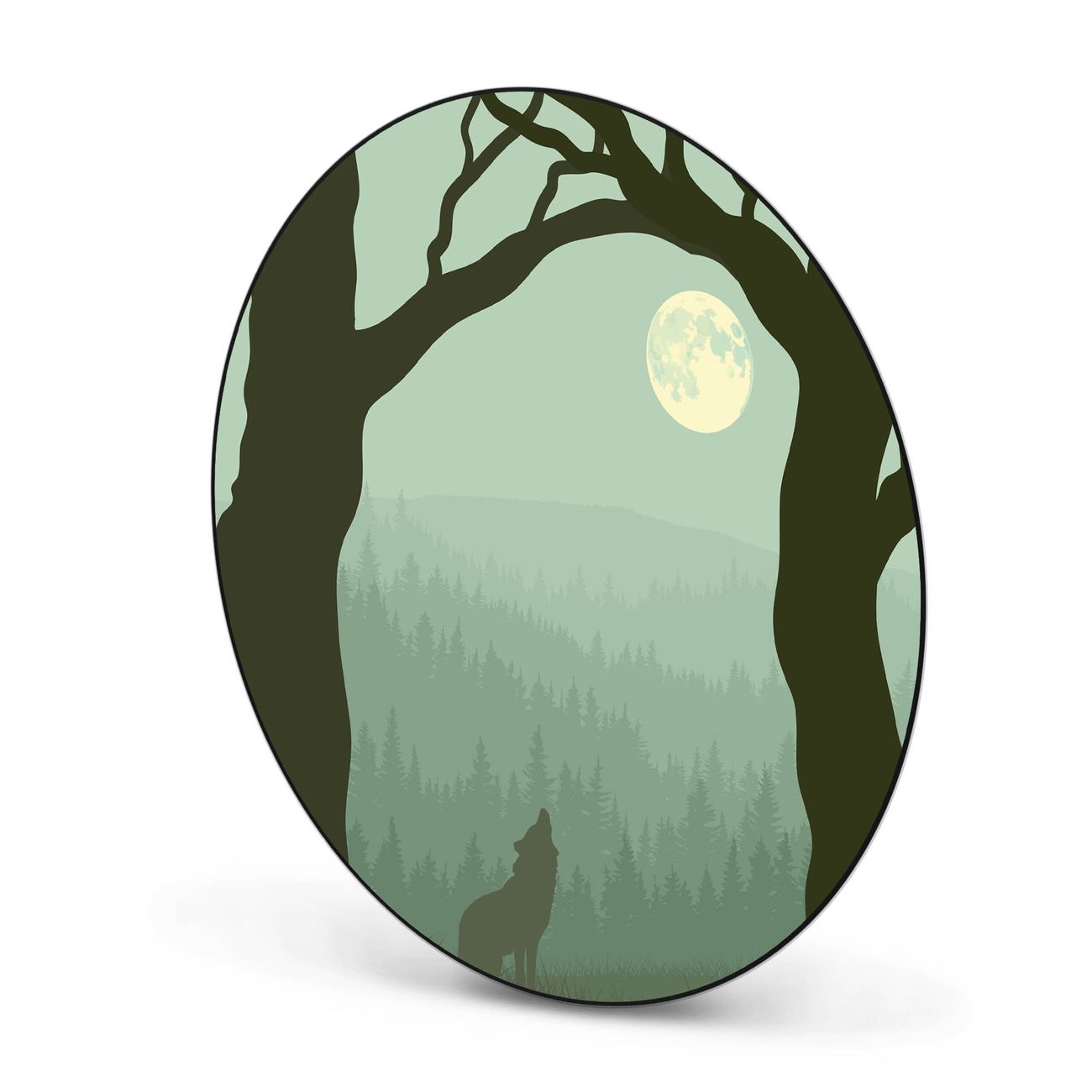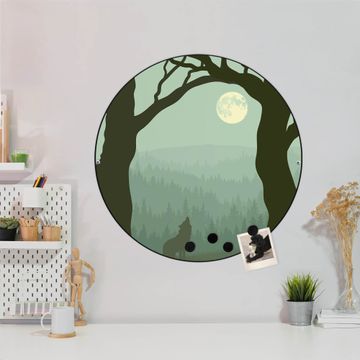 Stahl Magnettafel rund 47cm Heulender Wolf