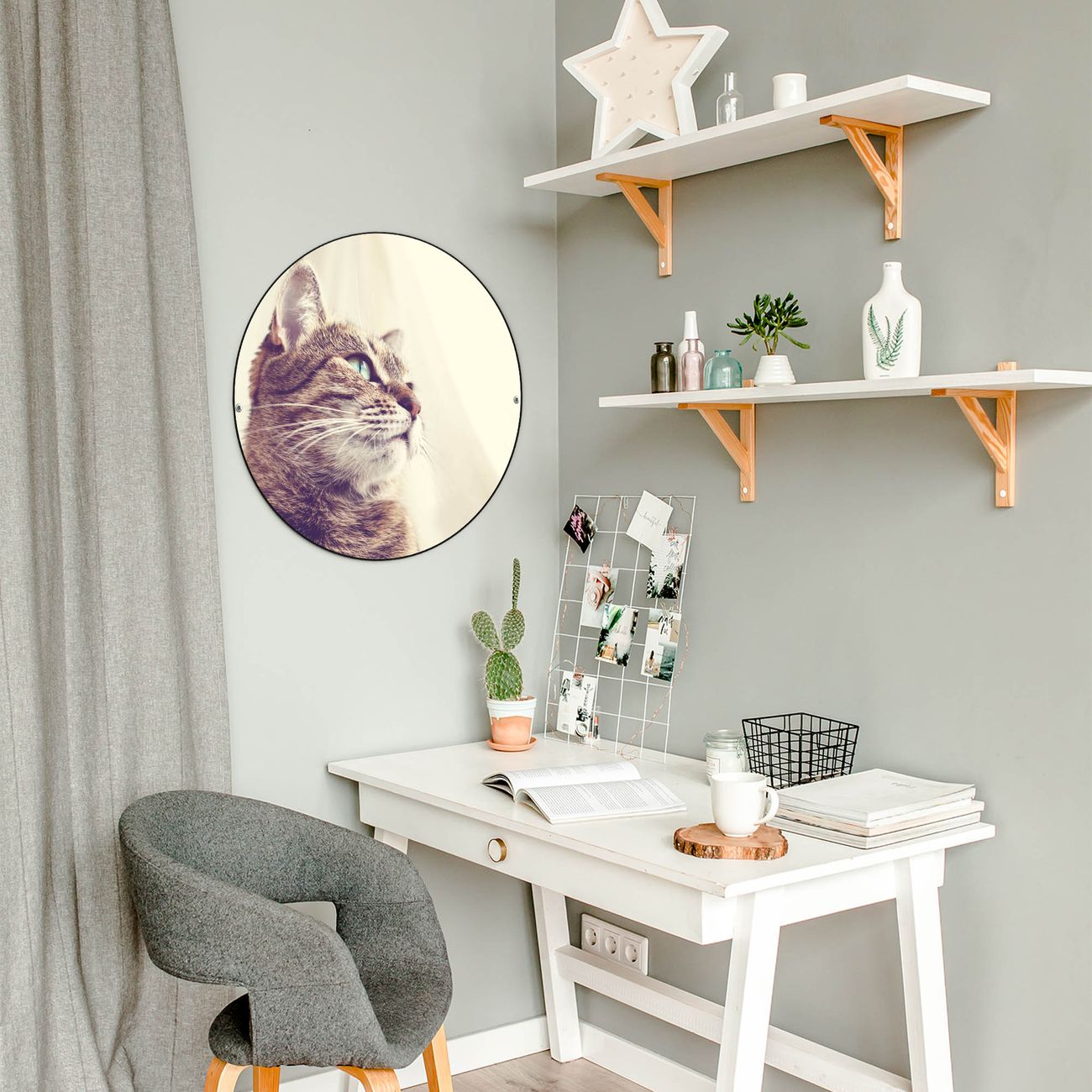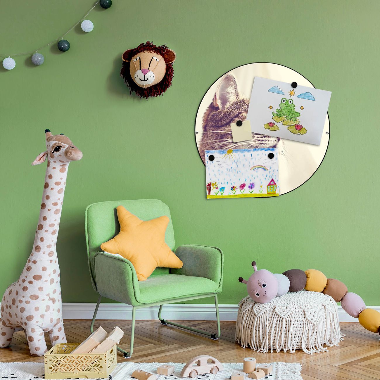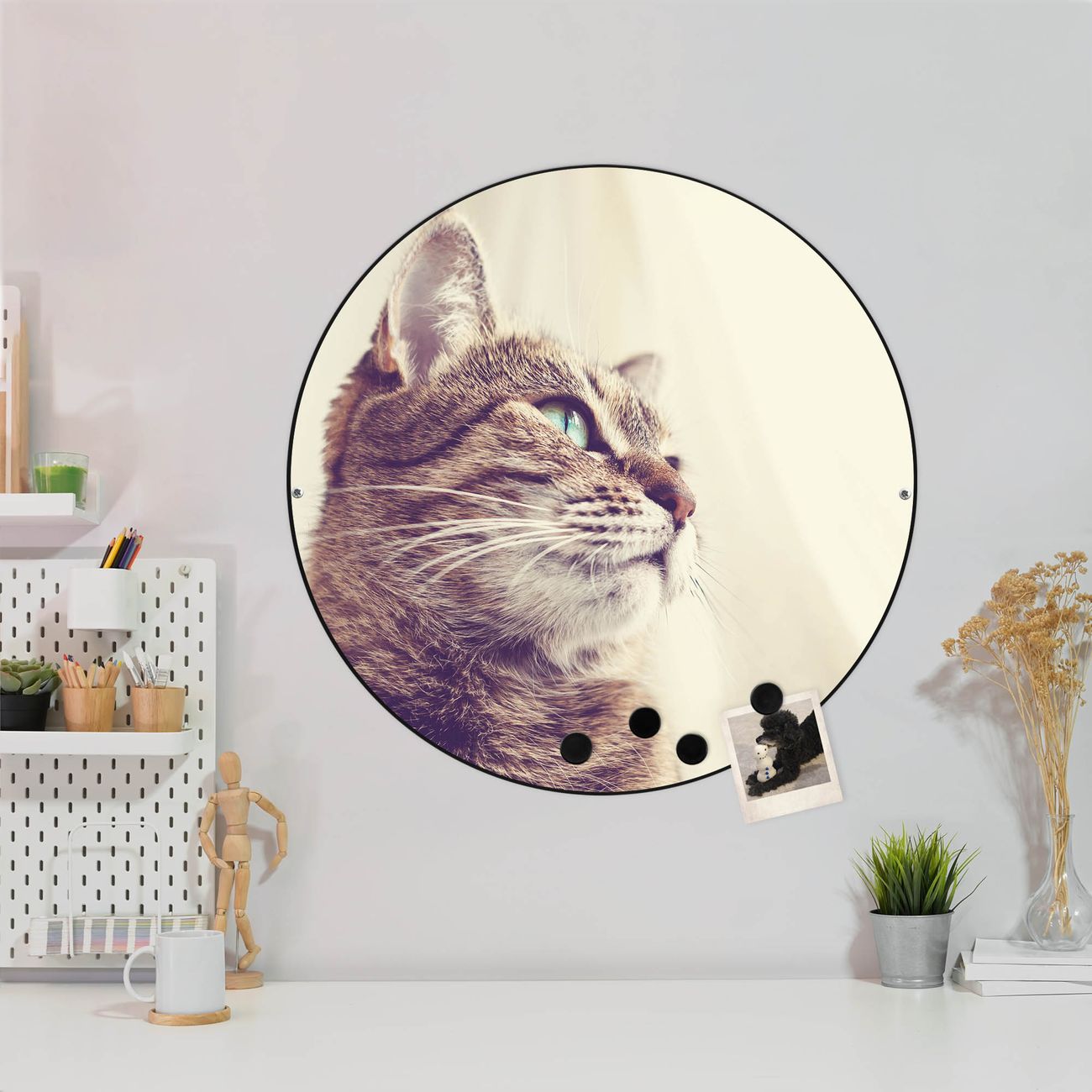 FUNKTION / DESIGN Die banjado Magnettafel mit dem Motiv Motiv Holgerson bringt Ordnung in Ihr Zettelchaos. Fotos, Termine, Notizen oder Rezepte lassen Sich hier stilvoll mit Magneten ordnen, Sie behalten alles im Blick. Die Design Magnetwand ist beschreibbar und wieder abwischbar. Mit dieser Pinnwand haben Sie auch ohne Notizen und Magneten ein schönes Dekoelement. Das Format bietet Ihnen ausreichend Platz um alle wichtigen Informationen im Blick zu behalten. DETAILS / NUTZEN Die magnetische Metall Pinnwand besteht aus schwarz lackiertem Stahl. Sie hat einen Durchmesser von 47cm. Es befinden sich an den Seiten zwei vorgefertigte Löcher die eine schnelle und unkomplizierte Anbringung ermöglichen. Das Motiv ist mit einem seidenmatten Laminat versehen und schützt so zusätzlich vor Kratzern. Es halten alle handelsüblichen Magneten daran. Wir sind ein kleines Team aus dem Herzen von Sachsen. Wir fertigen alle Artikel von Hand für Sie an, Sie erhalten keine preiswerte Importware. Auf Wunsch können Sie auch Ihr eigenes Foto auf die Magnettafel aufbringen, schreiben Sie uns an.