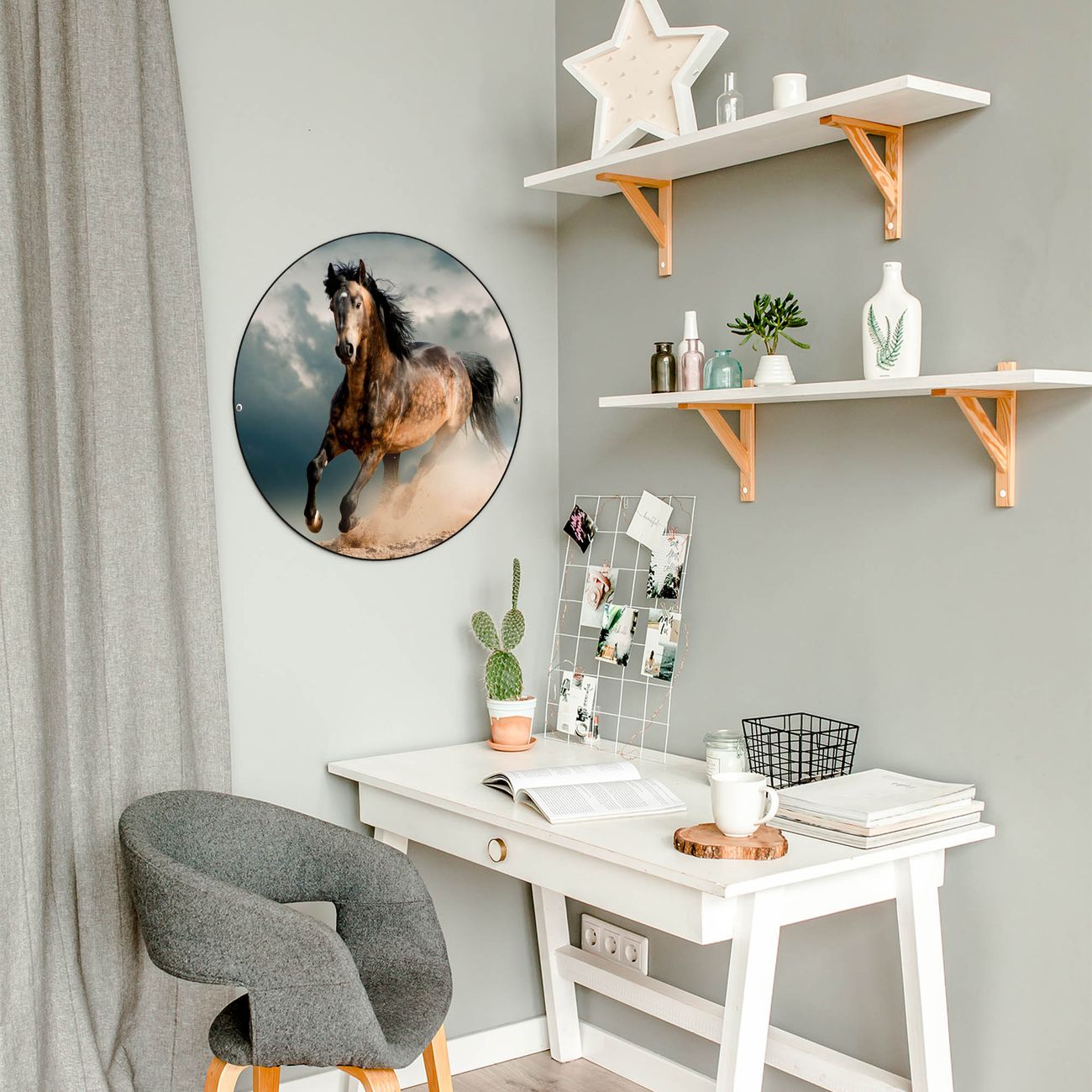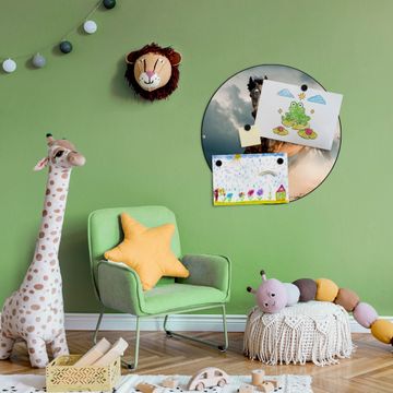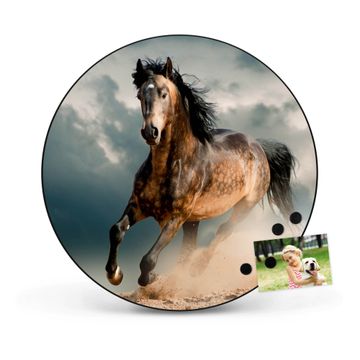 FUNKTION / DESIGN Die banjado Magnettafel mit dem Motiv Motiv Ibrahim bringt Ordnung in Ihr Zettelchaos. Fotos, Termine, Notizen oder Rezepte lassen Sich hier stilvoll mit Magneten ordnen, Sie behalten alles im Blick. Die Design Magnetwand ist beschreibbar und wieder abwischbar. Mit dieser Pinnwand haben Sie auch ohne Notizen und Magneten ein schönes Dekoelement. Das Format bietet Ihnen ausreichend Platz um alle wichtigen Informationen im Blick zu behalten. DETAILS / NUTZEN Die magnetische Metall Pinnwand besteht aus schwarz lackiertem Stahl. Sie hat einen Durchmesser von 47cm. Es befinden sich an den Seiten zwei vorgefertigte Löcher die eine schnelle und unkomplizierte Anbringung ermöglichen. Das Motiv ist mit einem seidenmatten Laminat versehen und schützt so zusätzlich vor Kratzern. Es halten alle handelsüblichen Magneten daran. Wir sind ein kleines Team aus dem Herzen von Sachsen. Wir fertigen alle Artikel von Hand für Sie an, Sie erhalten keine preiswerte Importware. Auf Wunsch können Sie auch Ihr eigenes Foto auf die Magnettafel aufbringen, schreiben Sie uns an.