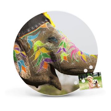 FUNKTION / DESIGN Die banjado Magnettafel mit dem Motiv Motiv Indischer Elephant bringt Ordnung in Ihr Zettelchaos. Fotos, Termine, Notizen oder Rezepte lassen Sich hier stilvoll mit Magneten ordnen, Sie behalten alles im Blick. Die Design Magnetwand ist beschreibbar und wieder abwischbar. Mit dieser Pinnwand haben Sie auch ohne Notizen und Magneten ein schönes Dekoelement. Das Format bietet Ihnen ausreichend Platz um alle wichtigen Informationen im Blick zu behalten. DETAILS / NUTZEN Die magnetische Metall Pinnwand besteht aus weiß lackiertem Stahl. Sie hat einen Durchmesser von 47cm. Es befinden sich an den Seiten zwei vorgefertigte Löcher die eine schnelle und unkomplizierte Anbringung ermöglichen. Das Motiv ist mit einem seidenmatten Laminat versehen und schützt so zusätzlich vor Kratzern. Es halten alle handelsüblichen Magneten daran. Wir sind ein kleines Team aus dem Herzen von Sachsen. Wir fertigen alle Artikel von Hand für Sie an, Sie erhalten keine preiswerte Importware. Auf Wunsch können Sie auch Ihr eigenes Foto auf die Magnettafel aufbringen, schreiben Sie uns an.