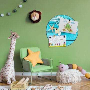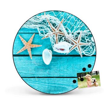 FUNKTION / DESIGN Die banjado Magnettafel mit dem Motiv Motiv Ins Netz Gegangen bringt Ordnung in Ihr Zettelchaos. Fotos, Termine, Notizen oder Rezepte lassen Sich hier stilvoll mit Magneten ordnen, Sie behalten alles im Blick. Die Design Magnetwand ist beschreibbar und wieder abwischbar. Mit dieser Pinnwand haben Sie auch ohne Notizen und Magneten ein schönes Dekoelement. Das Format bietet Ihnen ausreichend Platz um alle wichtigen Informationen im Blick zu behalten. DETAILS / NUTZEN Die magnetische Metall Pinnwand besteht aus schwarz lackiertem Stahl. Sie hat einen Durchmesser von 47cm. Es befinden sich an den Seiten zwei vorgefertigte Löcher die eine schnelle und unkomplizierte Anbringung ermöglichen. Das Motiv ist mit einem seidenmatten Laminat versehen und schützt so zusätzlich vor Kratzern. Es halten alle handelsüblichen Magneten daran. Wir sind ein kleines Team aus dem Herzen von Sachsen. Wir fertigen alle Artikel von Hand für Sie an, Sie erhalten keine preiswerte Importware. Auf Wunsch können Sie auch Ihr eigenes Foto auf die Magnettafel aufbringen, schreiben Sie uns an.