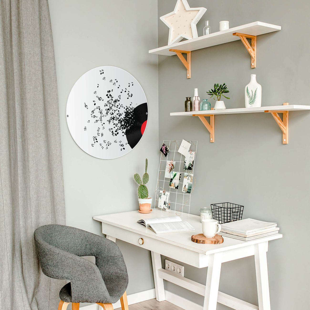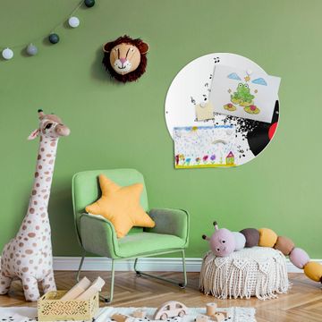 FUNKTION / DESIGN Die banjado Magnettafel mit dem Motiv Motiv Juke Box bringt Ordnung in Ihr Zettelchaos. Fotos, Termine, Notizen oder Rezepte lassen Sich hier stilvoll mit Magneten ordnen, Sie behalten alles im Blick. Die Design Magnetwand ist beschreibbar und wieder abwischbar. Mit dieser Pinnwand haben Sie auch ohne Notizen und Magneten ein schönes Dekoelement. Das Format bietet Ihnen ausreichend Platz um alle wichtigen Informationen im Blick zu behalten. DETAILS / NUTZEN Die magnetische Metall Pinnwand besteht aus weiß lackiertem Stahl. Sie hat einen Durchmesser von 47cm. Es befinden sich an den Seiten zwei vorgefertigte Löcher die eine schnelle und unkomplizierte Anbringung ermöglichen. Das Motiv ist mit einem seidenmatten Laminat versehen und schützt so zusätzlich vor Kratzern. Es halten alle handelsüblichen Magneten daran. Wir sind ein kleines Team aus dem Herzen von Sachsen. Wir fertigen alle Artikel von Hand für Sie an, Sie erhalten keine preiswerte Importware. Auf Wunsch können Sie auch Ihr eigenes Foto auf die Magnettafel aufbringen, schreiben Sie uns an.
