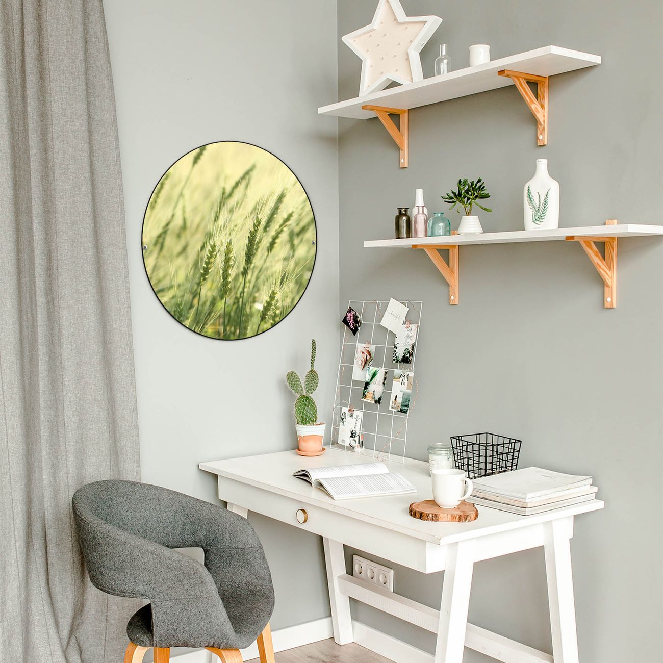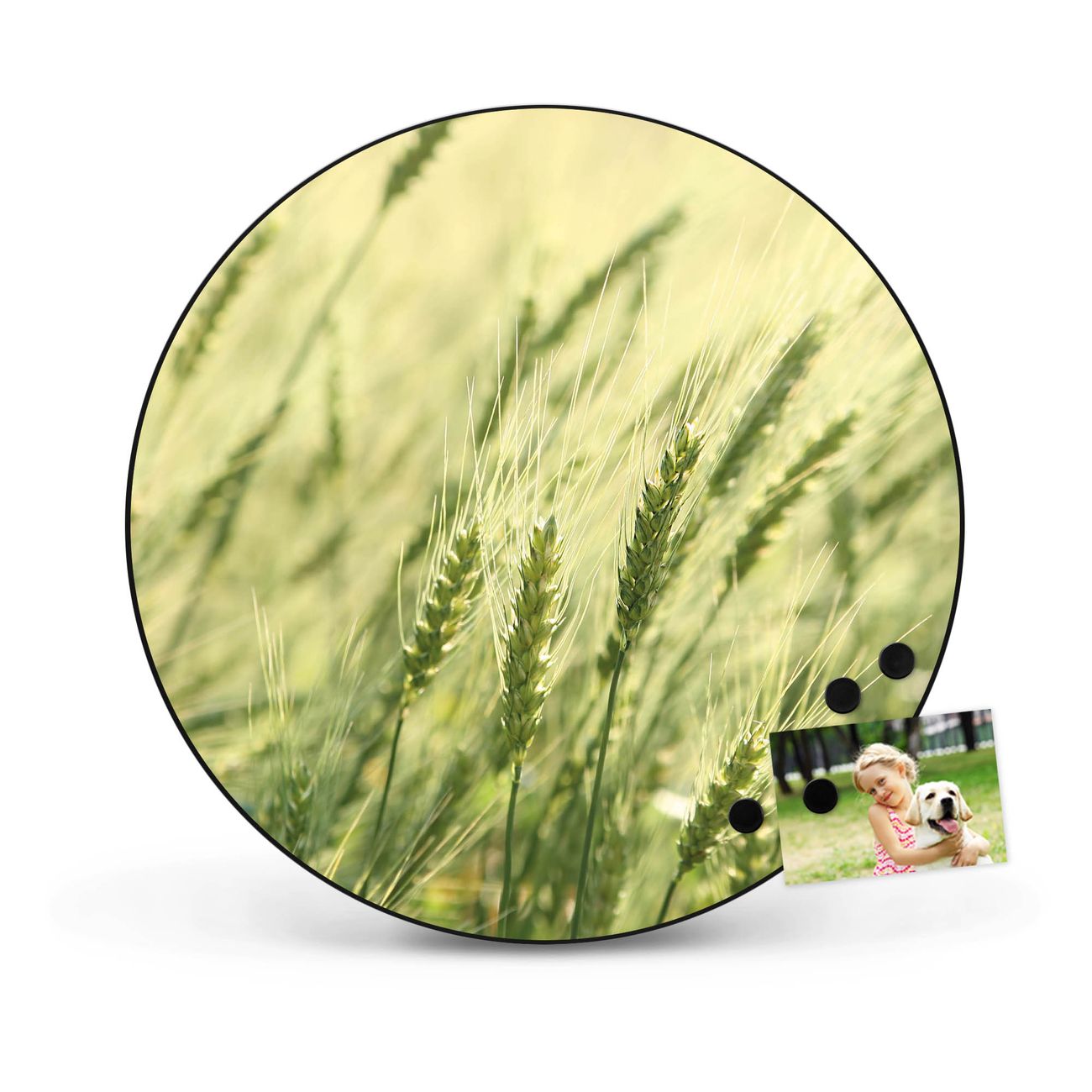 FUNKTION / DESIGN Die banjado Magnettafel mit dem Motiv Motiv Junges Getreide bringt Ordnung in Ihr Zettelchaos. Fotos, Termine, Notizen oder Rezepte lassen Sich hier stilvoll mit Magneten ordnen, Sie behalten alles im Blick. Die Design Magnetwand ist beschreibbar und wieder abwischbar. Mit dieser Pinnwand haben Sie auch ohne Notizen und Magneten ein schönes Dekoelement. Das Format bietet Ihnen ausreichend Platz um alle wichtigen Informationen im Blick zu behalten. DETAILS / NUTZEN Die magnetische Metall Pinnwand besteht aus schwarz lackiertem Stahl. Sie hat einen Durchmesser von 47cm. Es befinden sich an den Seiten zwei vorgefertigte Löcher die eine schnelle und unkomplizierte Anbringung ermöglichen. Das Motiv ist mit einem seidenmatten Laminat versehen und schützt so zusätzlich vor Kratzern. Es halten alle handelsüblichen Magneten daran. Wir sind ein kleines Team aus dem Herzen von Sachsen. Wir fertigen alle Artikel von Hand für Sie an, Sie erhalten keine preiswerte Importware. Auf Wunsch können Sie auch Ihr eigenes Foto auf die Magnettafel aufbringen, schreiben Sie uns an.