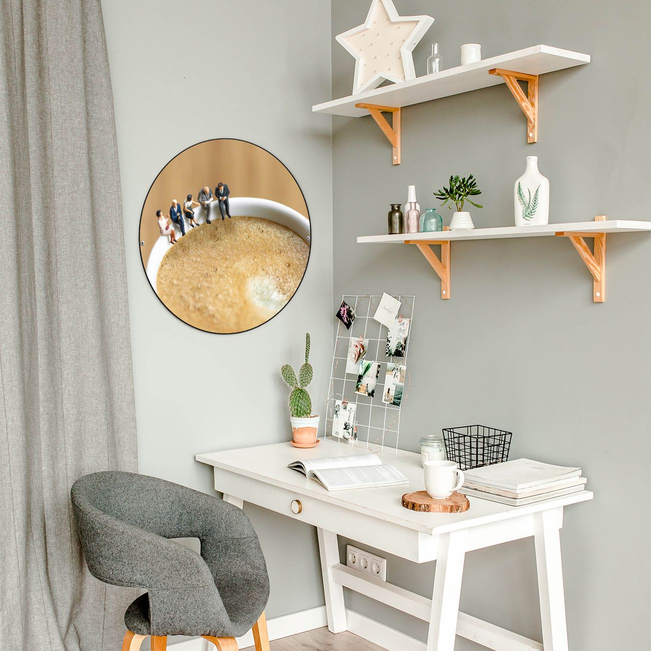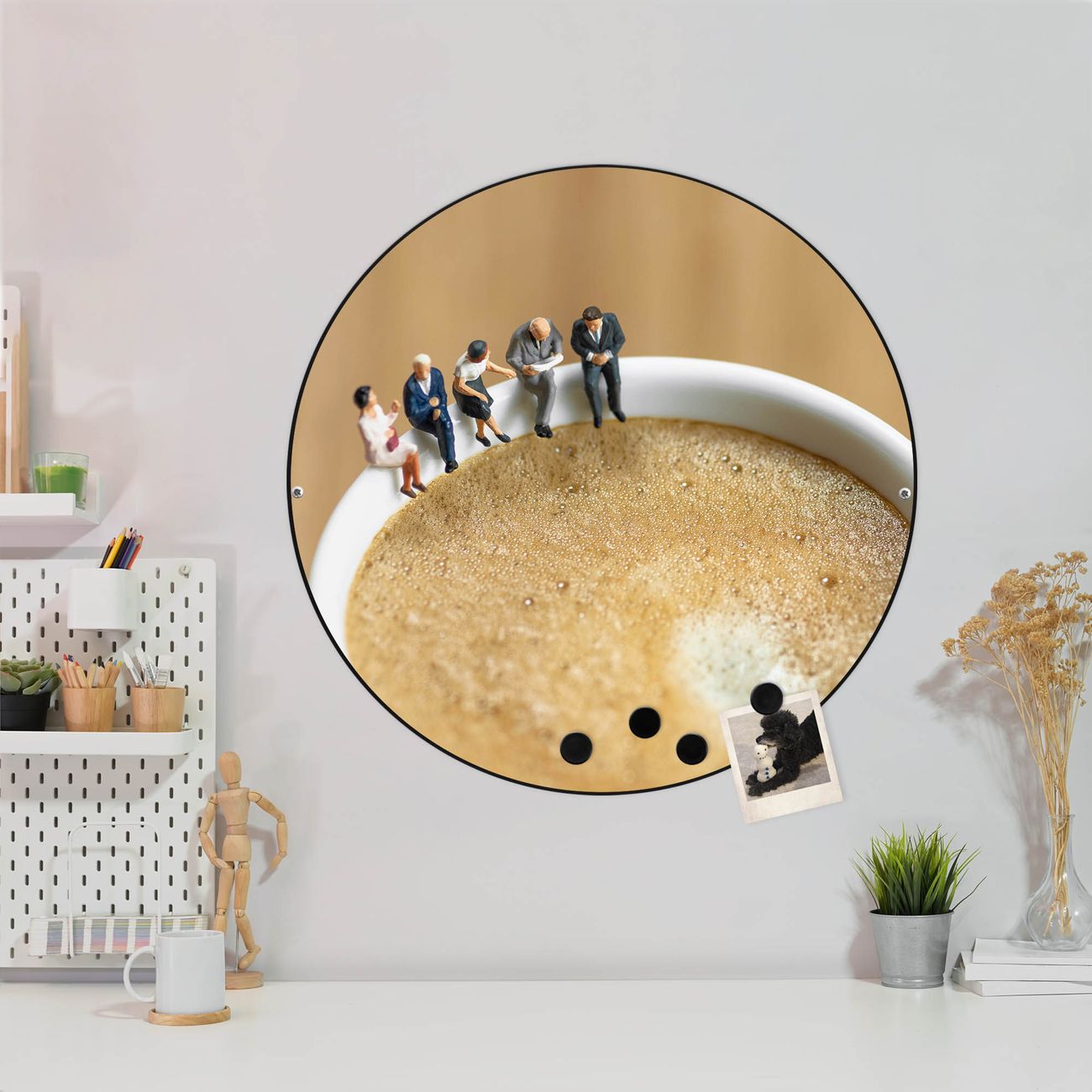 FUNKTION / DESIGN Die banjado Magnettafel mit dem Motiv Motiv Kaffeepause bringt Ordnung in Ihr Zettelchaos. Fotos, Termine, Notizen oder Rezepte lassen Sich hier stilvoll mit Magneten ordnen, Sie behalten alles im Blick. Die Design Magnetwand ist beschreibbar und wieder abwischbar. Mit dieser Pinnwand haben Sie auch ohne Notizen und Magneten ein schönes Dekoelement. Das Format bietet Ihnen ausreichend Platz um alle wichtigen Informationen im Blick zu behalten. DETAILS / NUTZEN Die magnetische Metall Pinnwand besteht aus schwarz lackiertem Stahl. Sie hat einen Durchmesser von 47cm. Es befinden sich an den Seiten zwei vorgefertigte Löcher die eine schnelle und unkomplizierte Anbringung ermöglichen. Das Motiv ist mit einem seidenmatten Laminat versehen und schützt so zusätzlich vor Kratzern. Es halten alle handelsüblichen Magneten daran. Wir sind ein kleines Team aus dem Herzen von Sachsen. Wir fertigen alle Artikel von Hand für Sie an, Sie erhalten keine preiswerte Importware. Auf Wunsch können Sie auch Ihr eigenes Foto auf die Magnettafel aufbringen, schreiben Sie uns an.