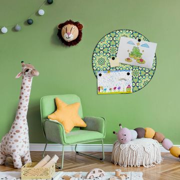 FUNKTION / DESIGN Die banjado Magnettafel mit dem Motiv Motiv Kaleidoscop Grün bringt Ordnung in Ihr Zettelchaos. Fotos, Termine, Notizen oder Rezepte lassen Sich hier stilvoll mit Magneten ordnen, Sie behalten alles im Blick. Die Design Magnetwand ist beschreibbar und wieder abwischbar. Mit dieser Pinnwand haben Sie auch ohne Notizen und Magneten ein schönes Dekoelement. Das Format bietet Ihnen ausreichend Platz um alle wichtigen Informationen im Blick zu behalten. DETAILS / NUTZEN Die magnetische Metall Pinnwand besteht aus schwarz lackiertem Stahl. Sie hat einen Durchmesser von 47cm. Es befinden sich an den Seiten zwei vorgefertigte Löcher die eine schnelle und unkomplizierte Anbringung ermöglichen. Das Motiv ist mit einem seidenmatten Laminat versehen und schützt so zusätzlich vor Kratzern. Es halten alle handelsüblichen Magneten daran. Wir sind ein kleines Team aus dem Herzen von Sachsen. Wir fertigen alle Artikel von Hand für Sie an, Sie erhalten keine preiswerte Importware. Auf Wunsch können Sie auch Ihr eigenes Foto auf die Magnettafel aufbringen, schreiben Sie uns an.