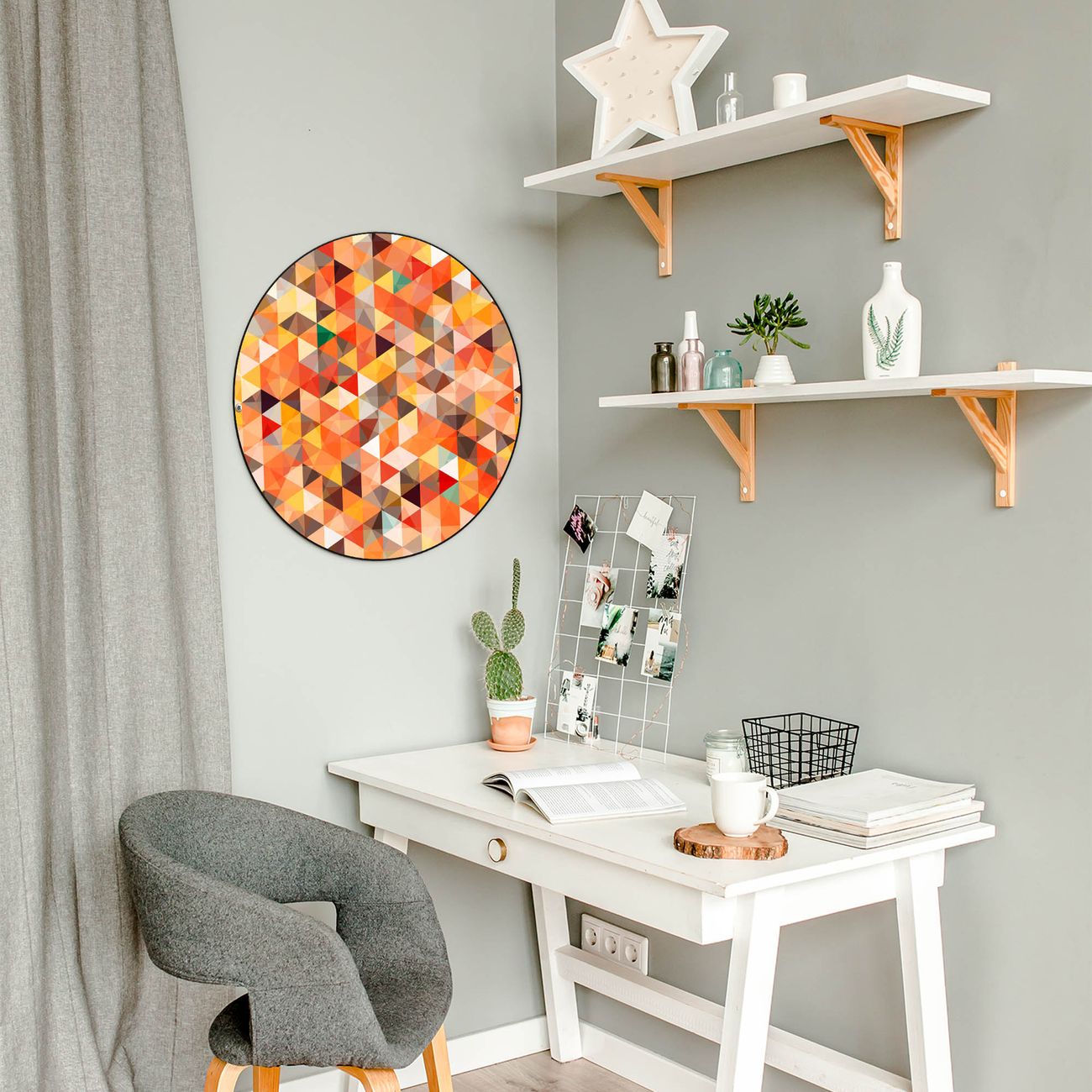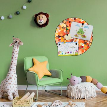 FUNKTION / DESIGN Die banjado Magnettafel mit dem Motiv Motiv Kaleidoskop bringt Ordnung in Ihr Zettelchaos. Fotos, Termine, Notizen oder Rezepte lassen Sich hier stilvoll mit Magneten ordnen, Sie behalten alles im Blick. Die Design Magnetwand ist beschreibbar und wieder abwischbar. Mit dieser Pinnwand haben Sie auch ohne Notizen und Magneten ein schönes Dekoelement. Das Format bietet Ihnen ausreichend Platz um alle wichtigen Informationen im Blick zu behalten. DETAILS / NUTZEN Die magnetische Metall Pinnwand besteht aus schwarz lackiertem Stahl. Sie hat einen Durchmesser von 47cm. Es befinden sich an den Seiten zwei vorgefertigte Löcher die eine schnelle und unkomplizierte Anbringung ermöglichen. Das Motiv ist mit einem seidenmatten Laminat versehen und schützt so zusätzlich vor Kratzern. Es halten alle handelsüblichen Magneten daran. Wir sind ein kleines Team aus dem Herzen von Sachsen. Wir fertigen alle Artikel von Hand für Sie an, Sie erhalten keine preiswerte Importware. Auf Wunsch können Sie auch Ihr eigenes Foto auf die Magnettafel aufbringen, schreiben Sie uns an.
