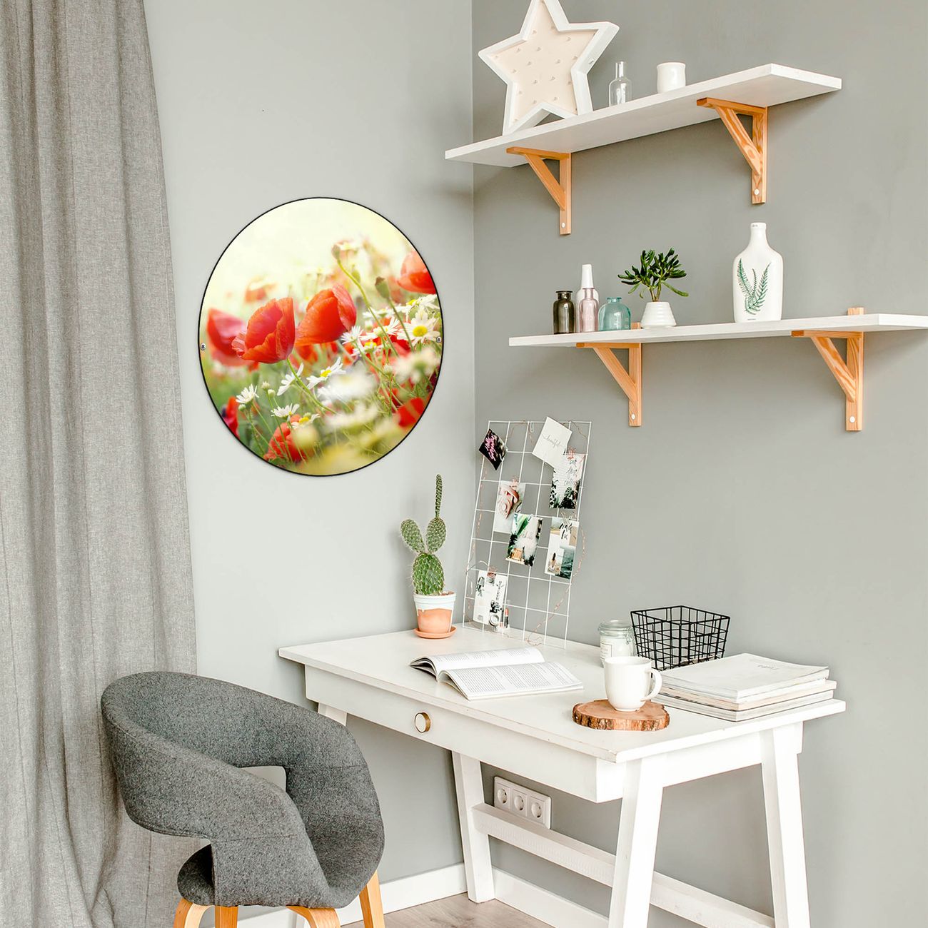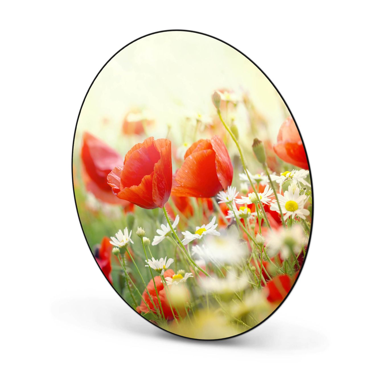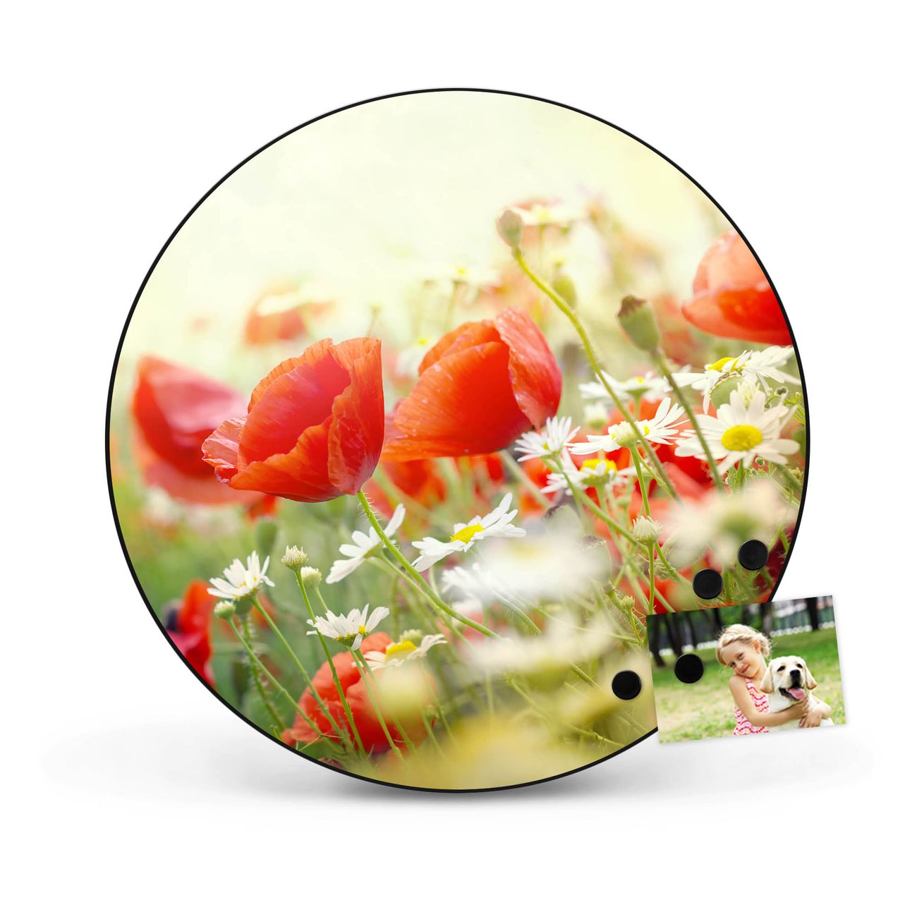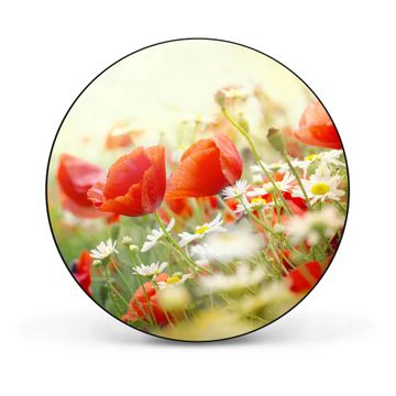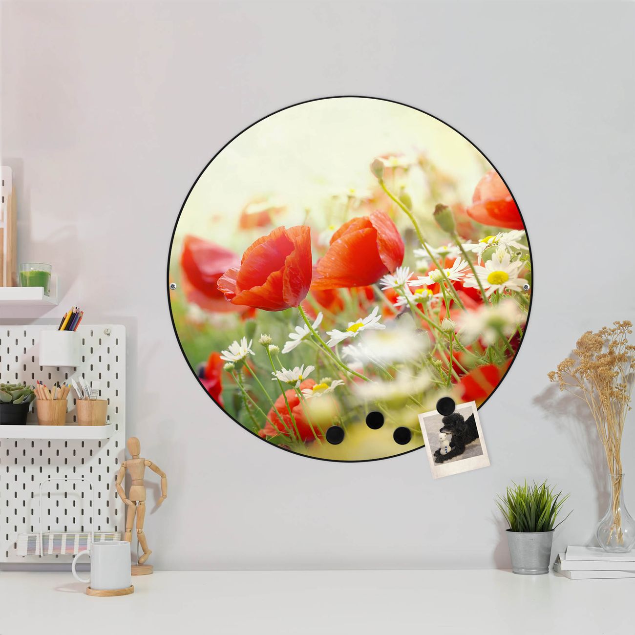 Stahl Magnettafel rund 47cm Kamille Und Mohn