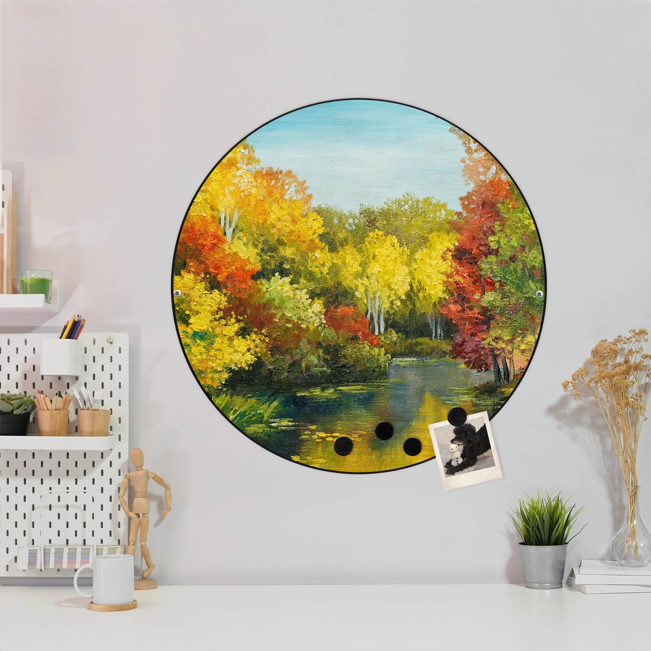 Stahl Magnettafel rund 47cm Kanal Im Herbst