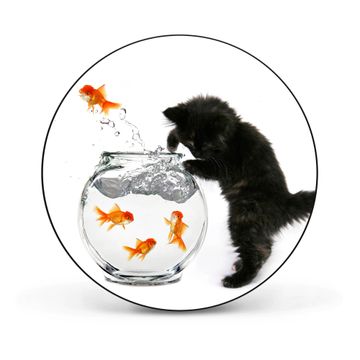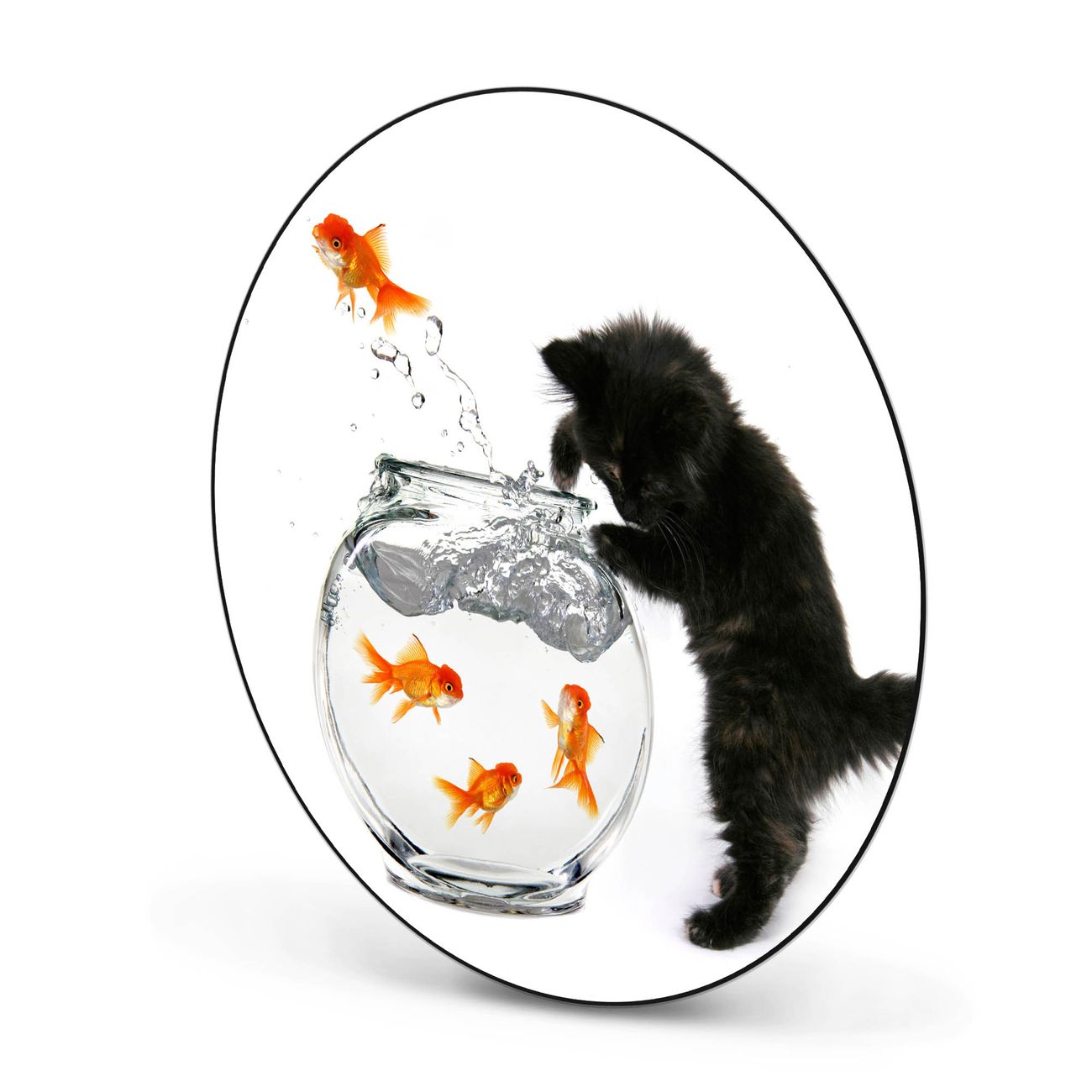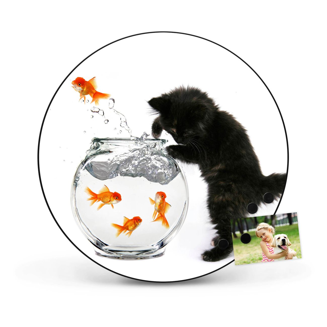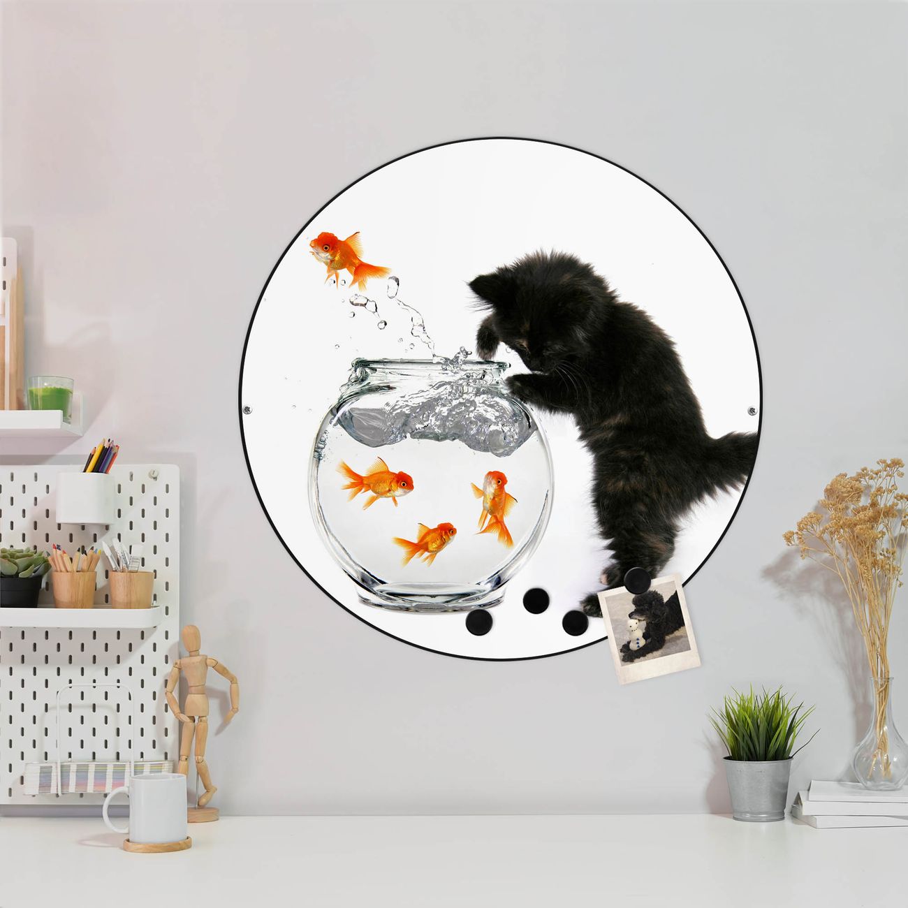 Stahl Magnettafel rund 47cm Katze Und Fisch