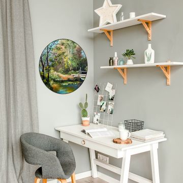 FUNKTION / DESIGN Die banjado Magnettafel mit dem Motiv Motiv Kleine Brücke bringt Ordnung in Ihr Zettelchaos. Fotos, Termine, Notizen oder Rezepte lassen Sich hier stilvoll mit Magneten ordnen, Sie behalten alles im Blick. Die Design Magnetwand ist beschreibbar und wieder abwischbar. Mit dieser Pinnwand haben Sie auch ohne Notizen und Magneten ein schönes Dekoelement. Das Format bietet Ihnen ausreichend Platz um alle wichtigen Informationen im Blick zu behalten. DETAILS / NUTZEN Die magnetische Metall Pinnwand besteht aus schwarz lackiertem Stahl. Sie hat einen Durchmesser von 47cm. Es befinden sich an den Seiten zwei vorgefertigte Löcher die eine schnelle und unkomplizierte Anbringung ermöglichen. Das Motiv ist mit einem seidenmatten Laminat versehen und schützt so zusätzlich vor Kratzern. Es halten alle handelsüblichen Magneten daran. Wir sind ein kleines Team aus dem Herzen von Sachsen. Wir fertigen alle Artikel von Hand für Sie an, Sie erhalten keine preiswerte Importware. Auf Wunsch können Sie auch Ihr eigenes Foto auf die Magnettafel aufbringen, schreiben Sie uns an.